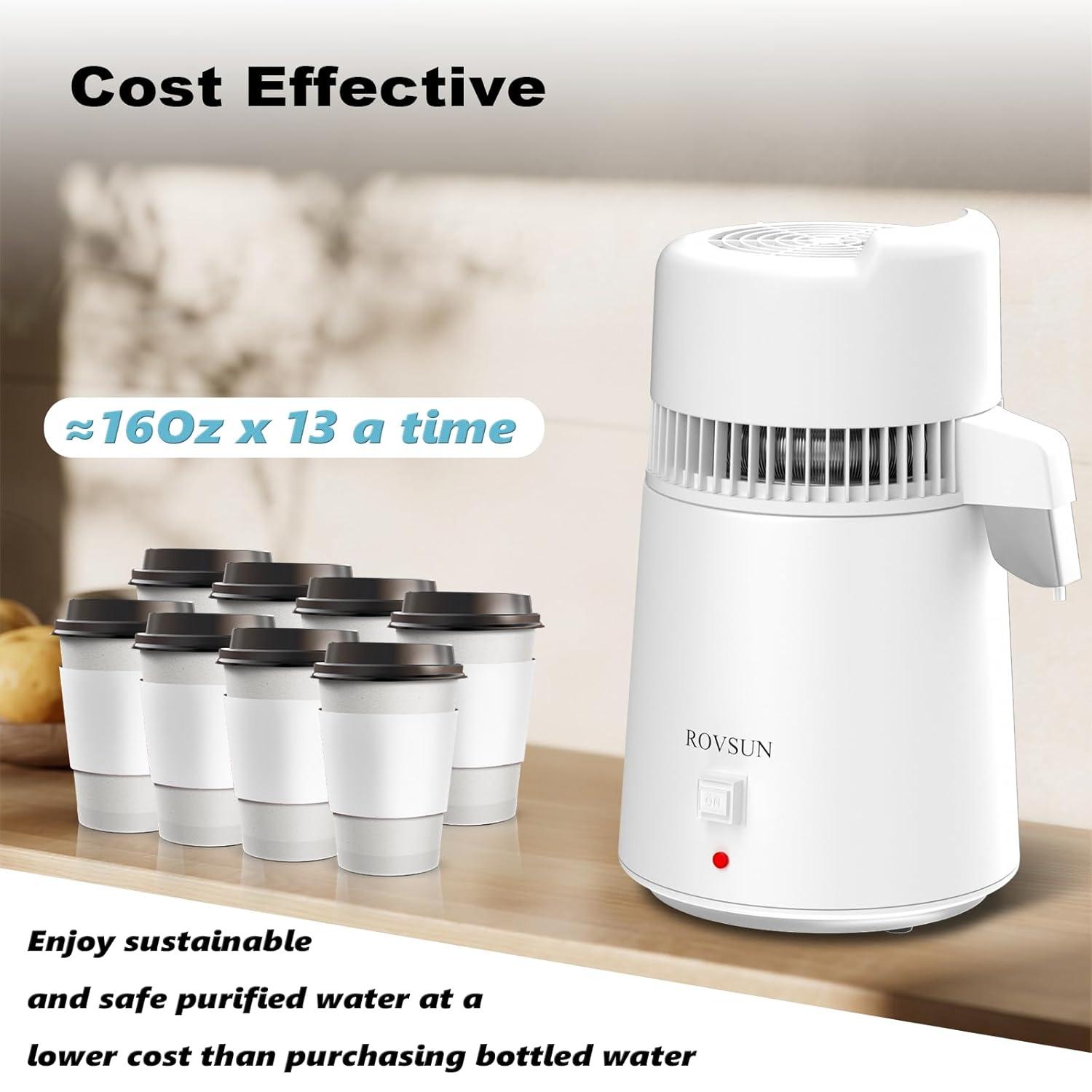 ROVSUN 【Upgraded】 1.1 Gallon/4L Water Distiller Countertop Distilled Water Machine with Flame-Retardant Material, BPA-Free Container & Stainless Steel Interior, 750W Distilled Water Maker Purifier(4L-White)
