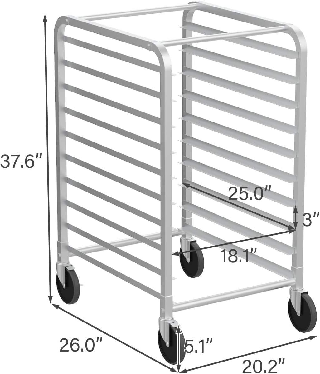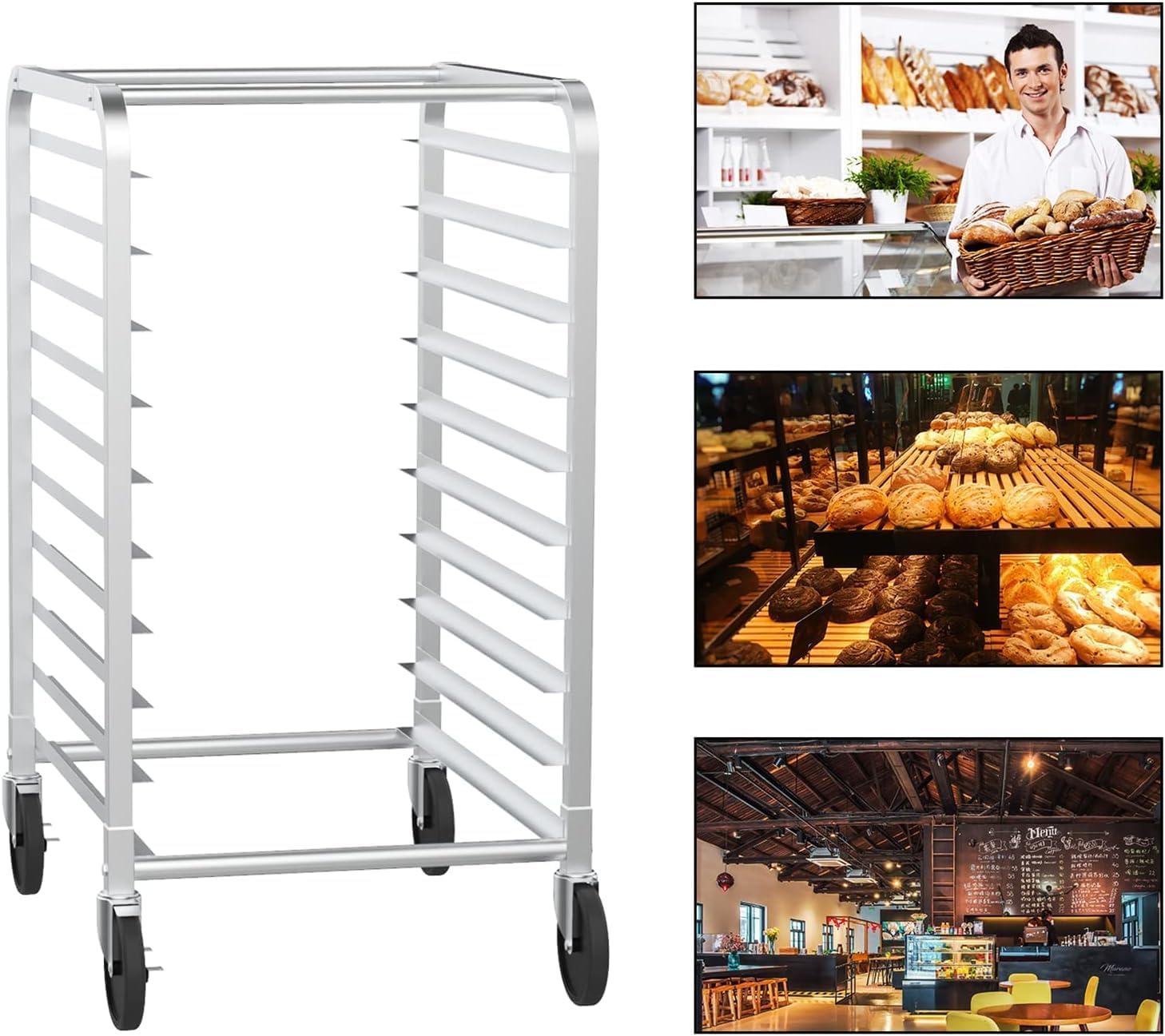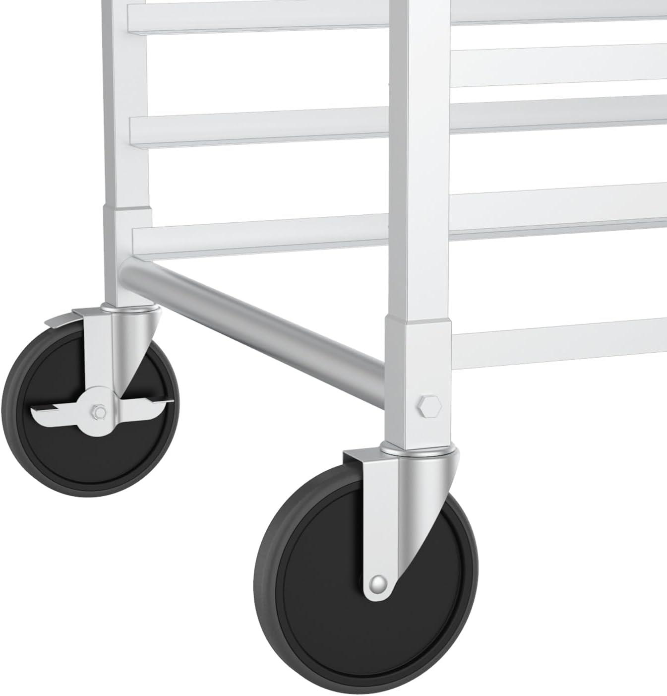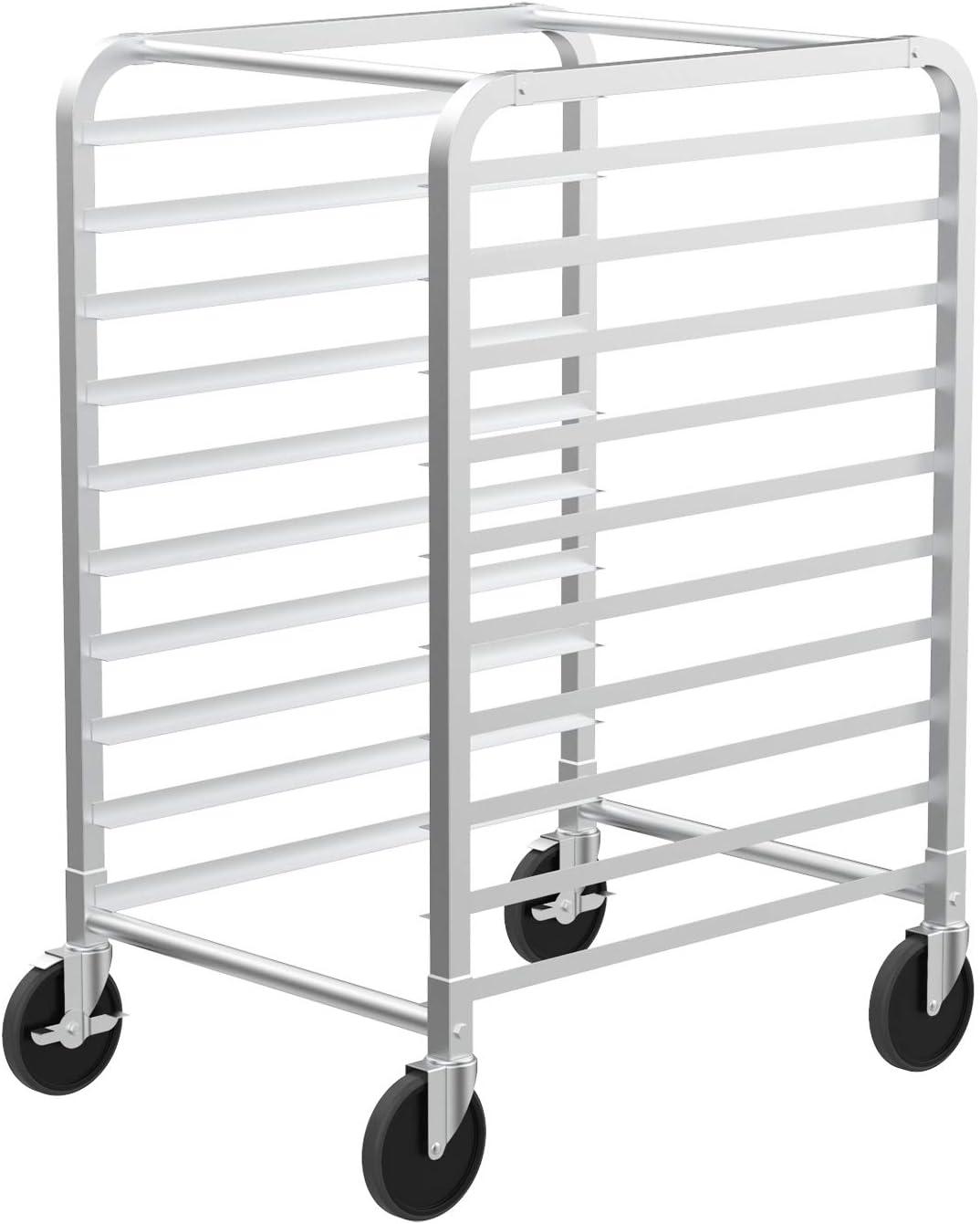 ROVSUN 10-Tiers Sheet Bun Pan Speed Bakery Tray Racks, Commercial Stainless Steel Baking Racks with Brake Wheels, Push Bread Tray Food Cart, Perfect for Kitchen/Dining Rooms(10-Tier)