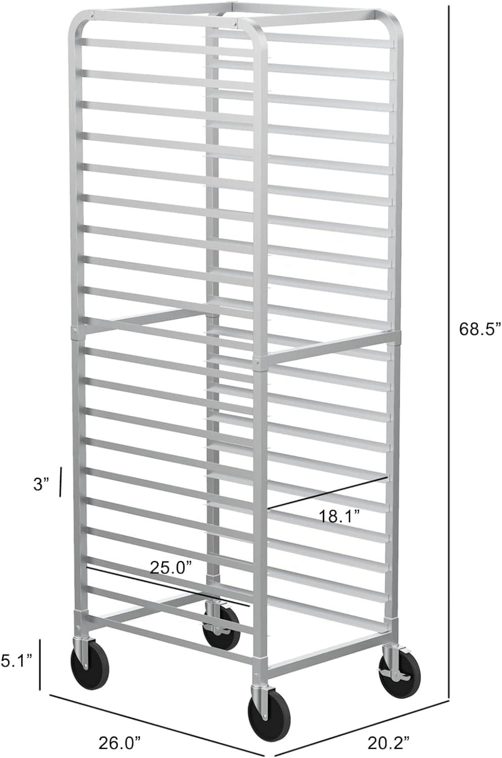 ROVSUN 10-Tiers Sheet Bun Pan Speed Bakery Tray Racks, Commercial Stainless Steel Baking Racks with Brake Wheels, Push Bread Tray Food Cart, Perfect for Kitchen/Dining Rooms(20-Tier)