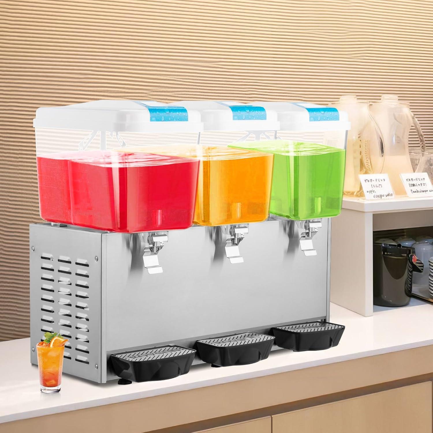 【Large Capacity with Efficient Mixing】 The refrigerated drink dispenser features double 4.8 gallon tanks that can hold large amount of of drinks with different flavors. The paddle system provides 360-degree stirring to keep beverages properly mixed and to reduce sediment