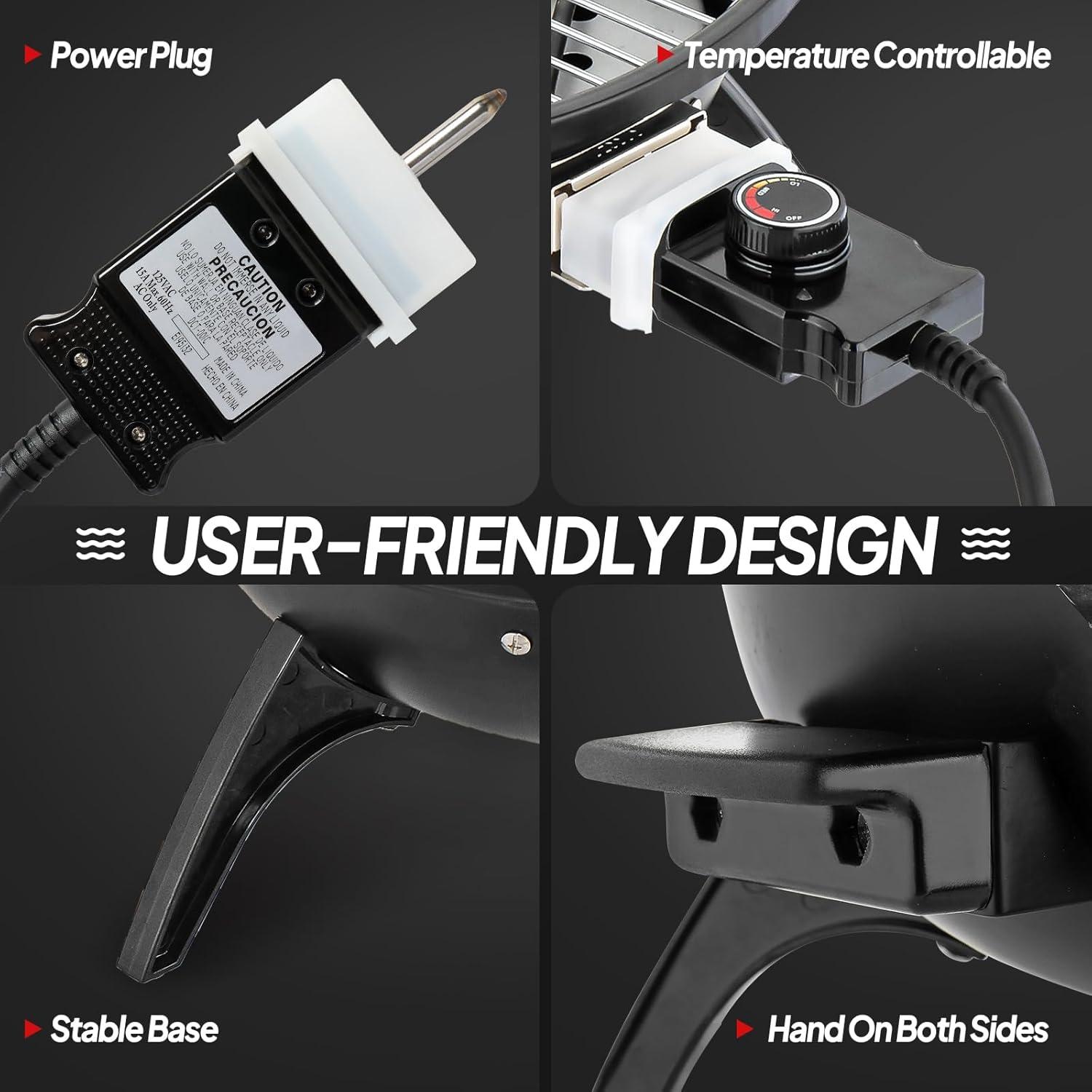 ROVSUN 1600W Tabletop Electric Grill with Temperature Control, Black 304 Stainless Steel Grill w/Double Layer Design, Portable & Removable, Small Stove for Indoor and Outdoor Use(Tabletop)