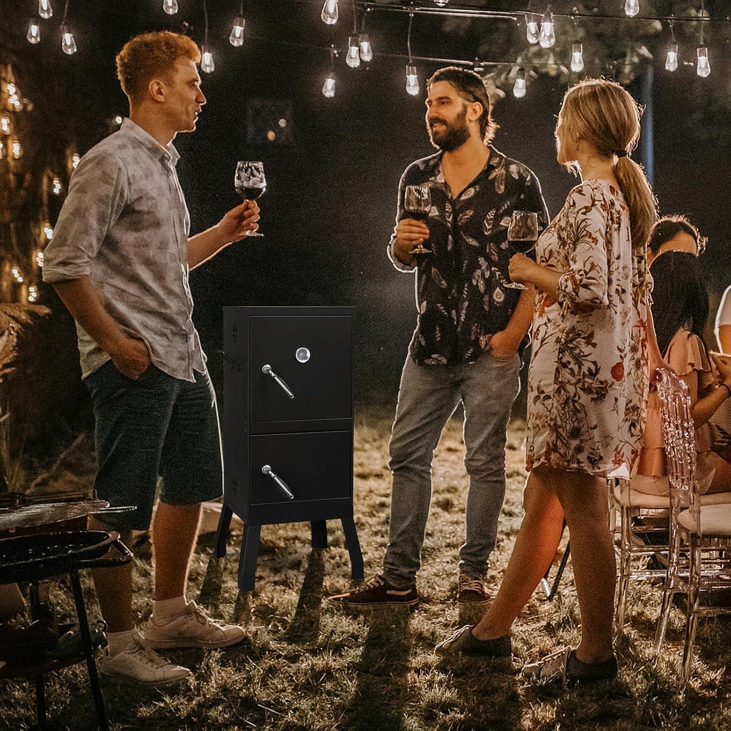 imageROVSUN 2in1 Outdoor Smoker with Double Doors Vertical Portable Charcoal Grill with Two Detachable Grill Smoking Racks and Charcoal Pan Perfect for Camping Barbecue Black