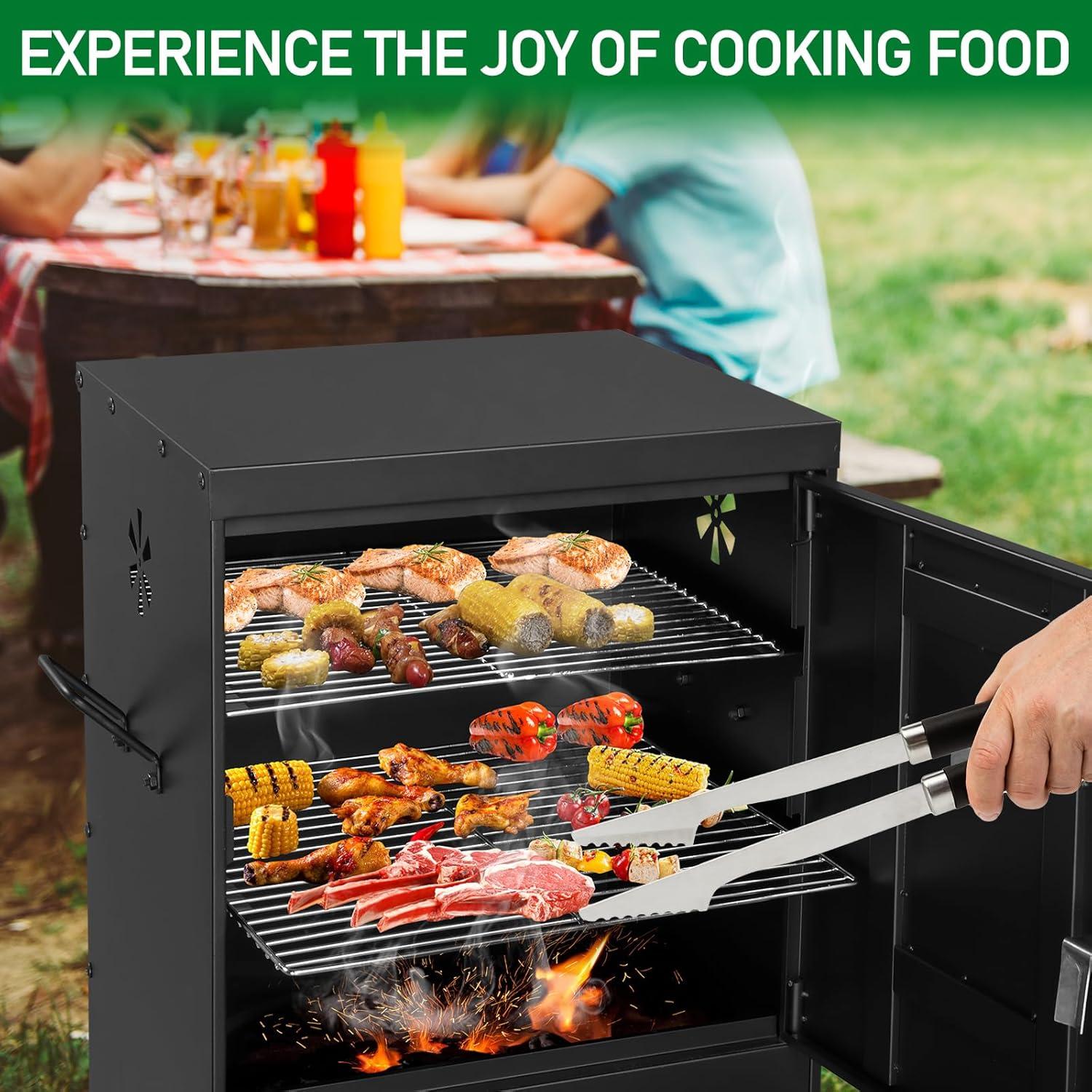 Portable and durable: Built with heavy-duty steel legs for stability and side carrying handles for easy transport, this smoker is ready for indoor cooking or outdoor camping. The rust-proof construction and detachable, dishwasher-safe grill make cleanup effortless. Tough enough for years of BBQ adventures!