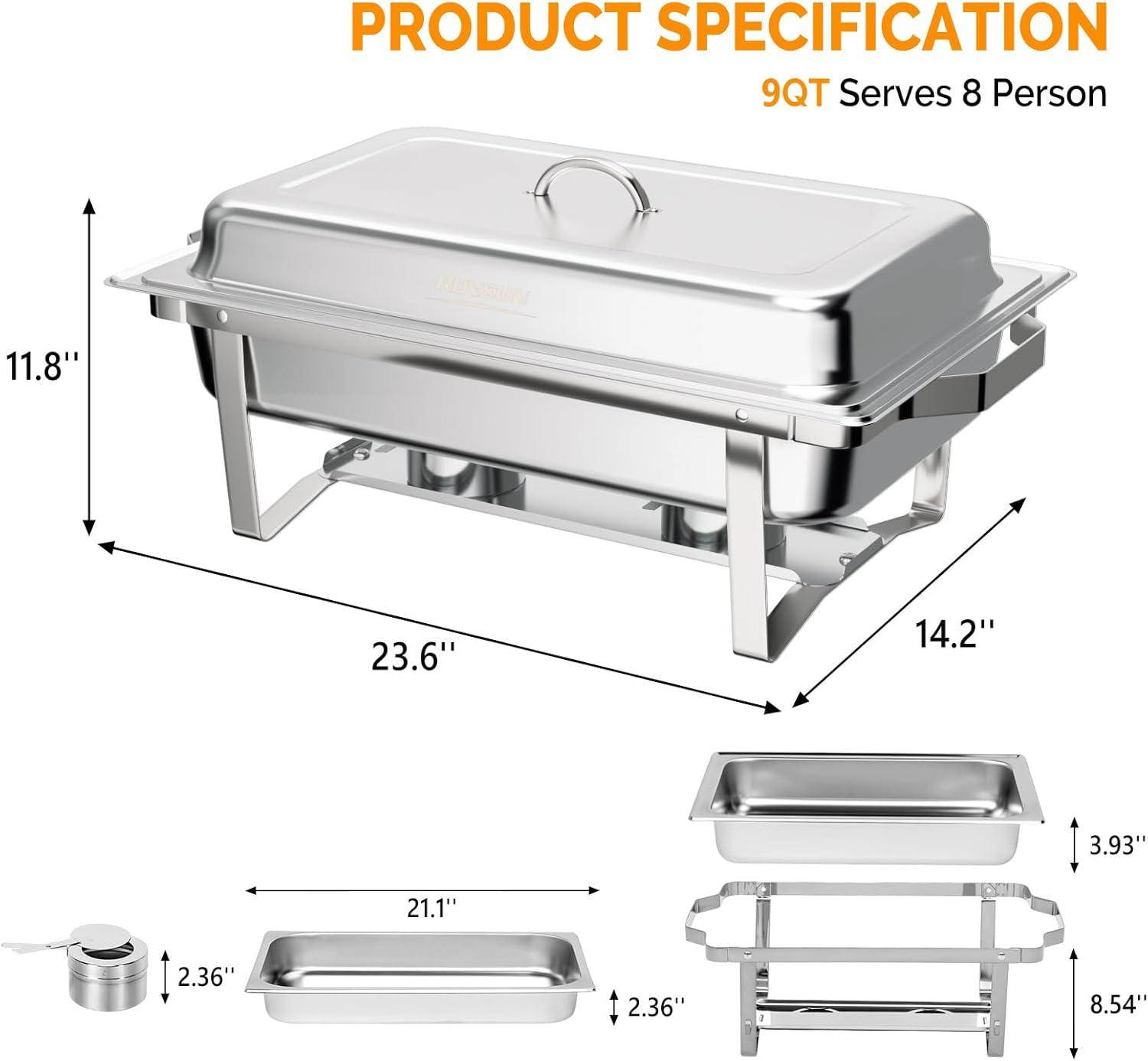 ROVSUN 2 Pack Chafing Dish for Buffet, 9 Quart Stainless Steel Chafing Dish Buffet Set with Rolled-Edge Design, Chafers and Buffet Warmers Sets with Folding Frame for Party, Catering, Wedding(8)