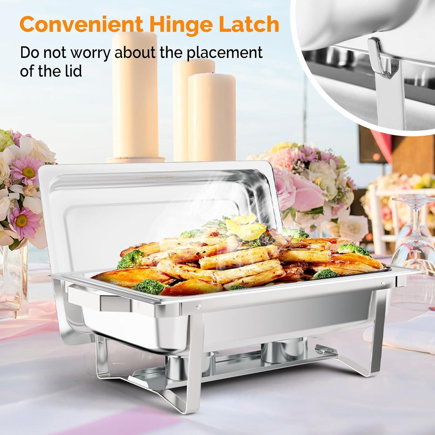 【Rolled-Edge Design】Features with rolled edge design, meticulously polished and rounded, saying goodbye to sharp edges. This chafers servers set protects your fingers,ensuring safe handling and cleaning, and adds convenience to your buffet setup