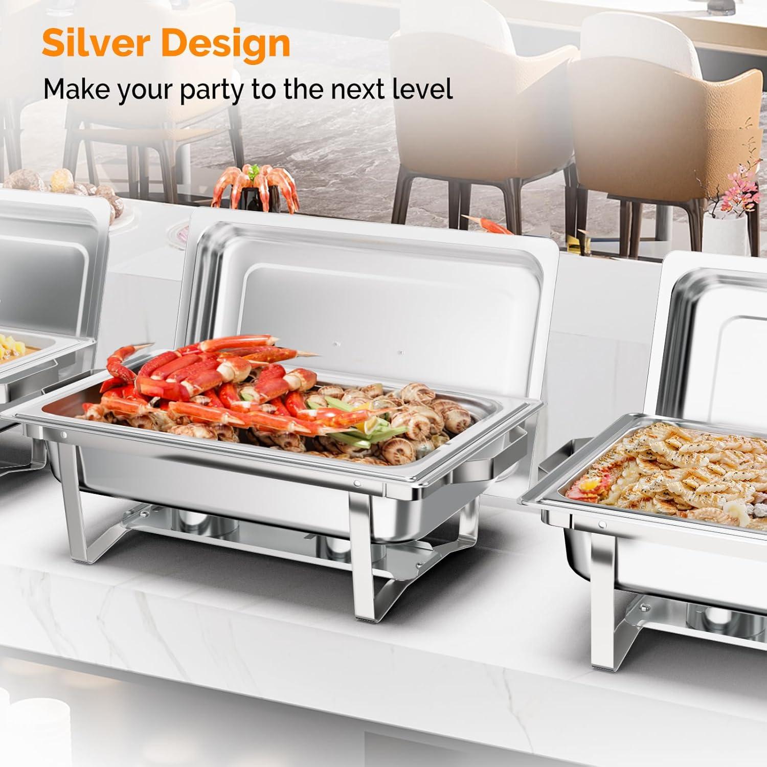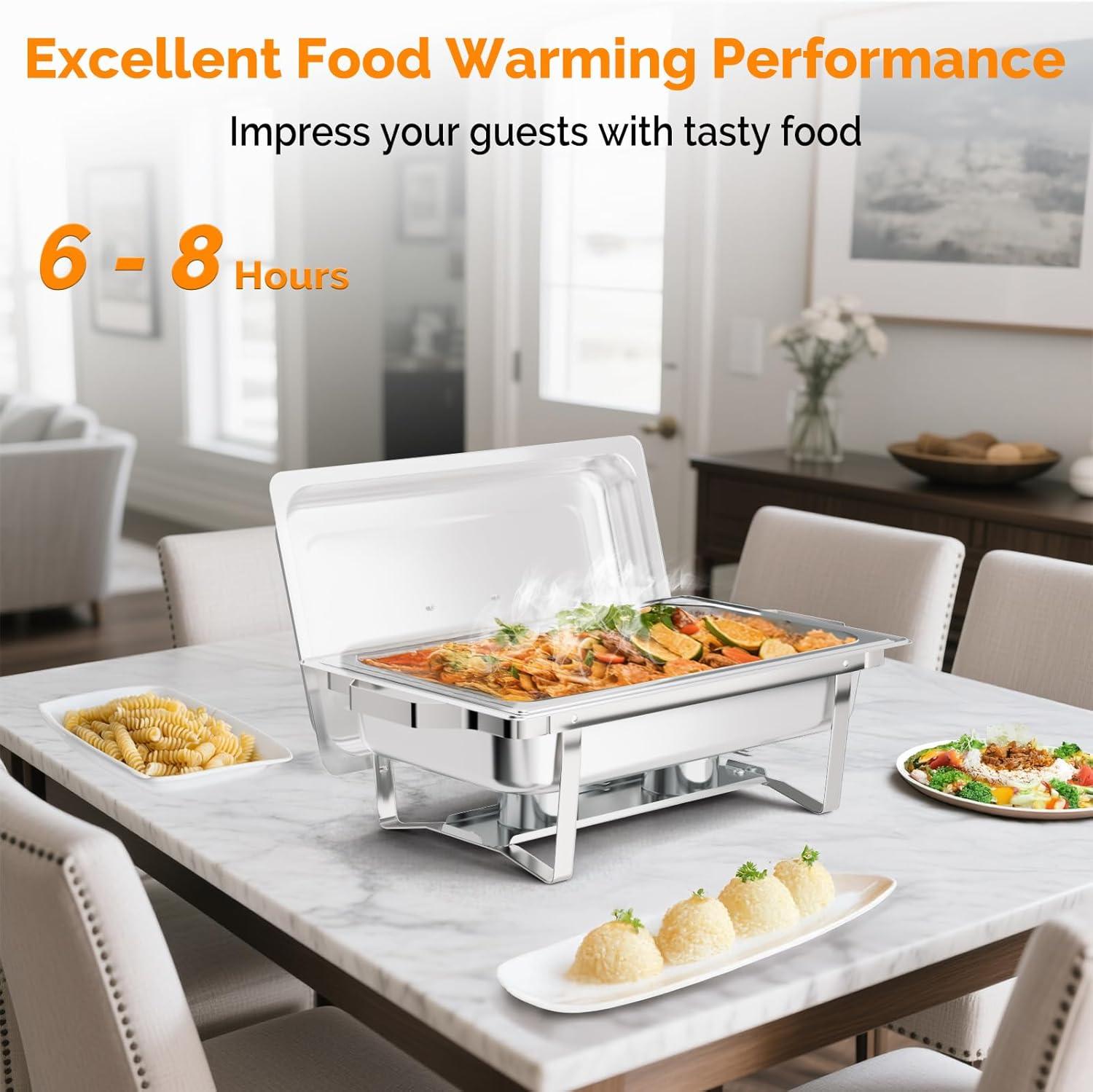【Keeps Your Food Hot and Fresh All Day】Say goodbye to cold meals! This chafing dish buffet set keep your food hot and fresh for hours, ensuring guests can enjoy every bite at the perfect temperature, even during long gatherings or celebrations.Ideal for parties, banquets, weddings, and other indoor and outdoor catering events