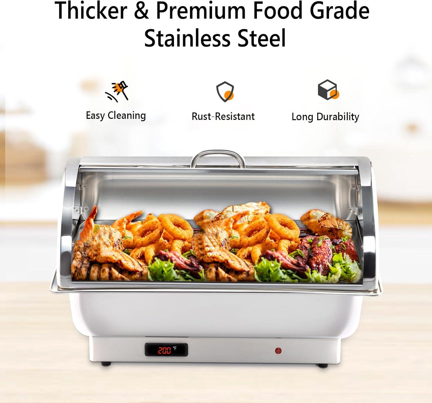 ROVSUN 2 Pack Electric 9 QT Chafing Dishes Buffet Set,NSF Stainless Steel Roll Top Catering Chafer Server Food Warmer with Cover, Full Size & 2 Detachable Food Pans for Party Wedding Banquet(Stainless Steel Lid - 1 Pack)