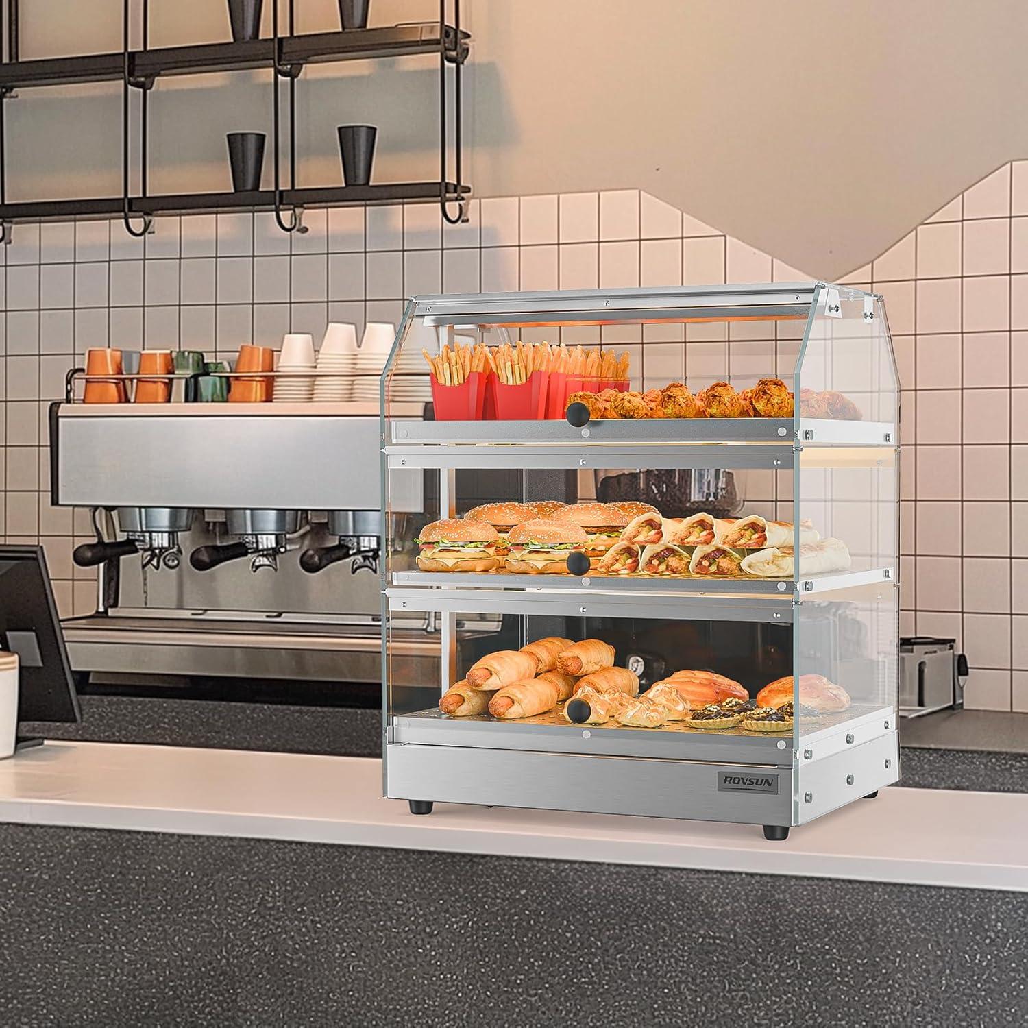 【Speedy 300W Heating】Get hot food ready quickly with our powerful 300W heating system, reaching ideal serving temperature in minutes. Advanced internal heat distribution ensures consistent warmth throughout this commercial food warmer, keeping pastries, pizzas, and sandwiches perfectly warm for customers