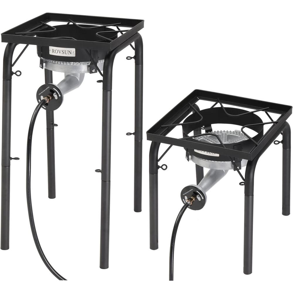 Height Adjustable ★ You can use this burner as a tabletop or standing cooker depending on you set up the attachable legs or not. Burner is 31.7 inch tall when assembling legs, which is a good height to cook. You don’t need to bend your back.