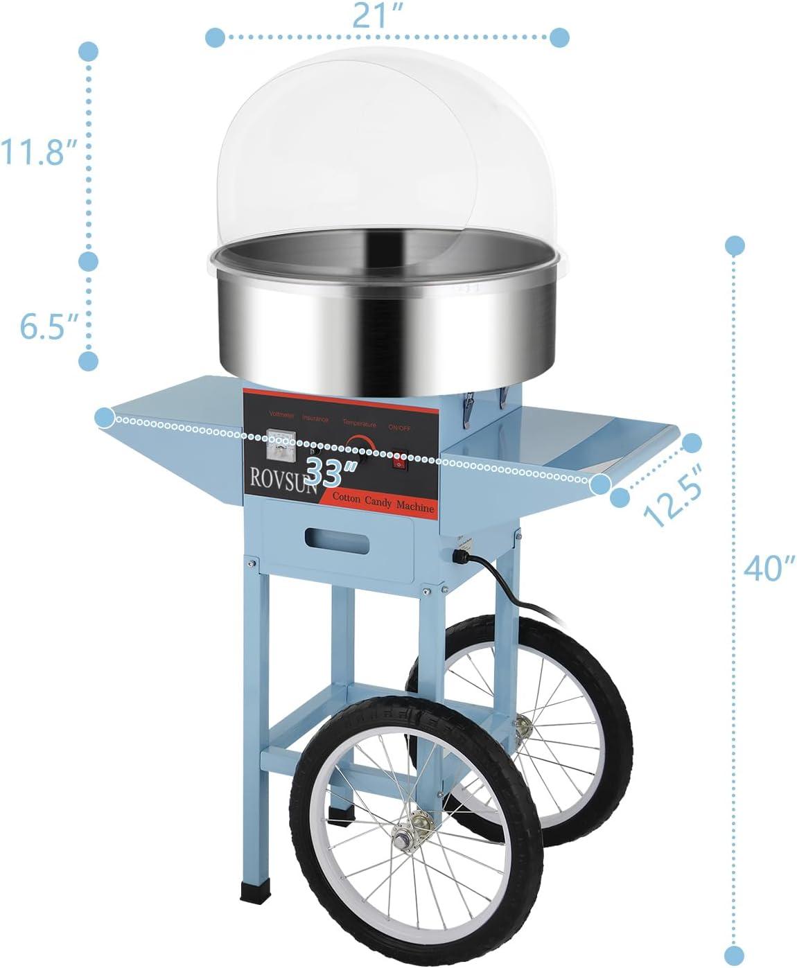 imageROVSUN 21 Inch Cotton Candy Machine Cart Electric Cotton Candy Maker Candy Floss Machine wCover Stainless Steel Bowl Sugar Scoop and Large Storage Drawer for Commercial Home Party Carnival BlueBluewithout Cover