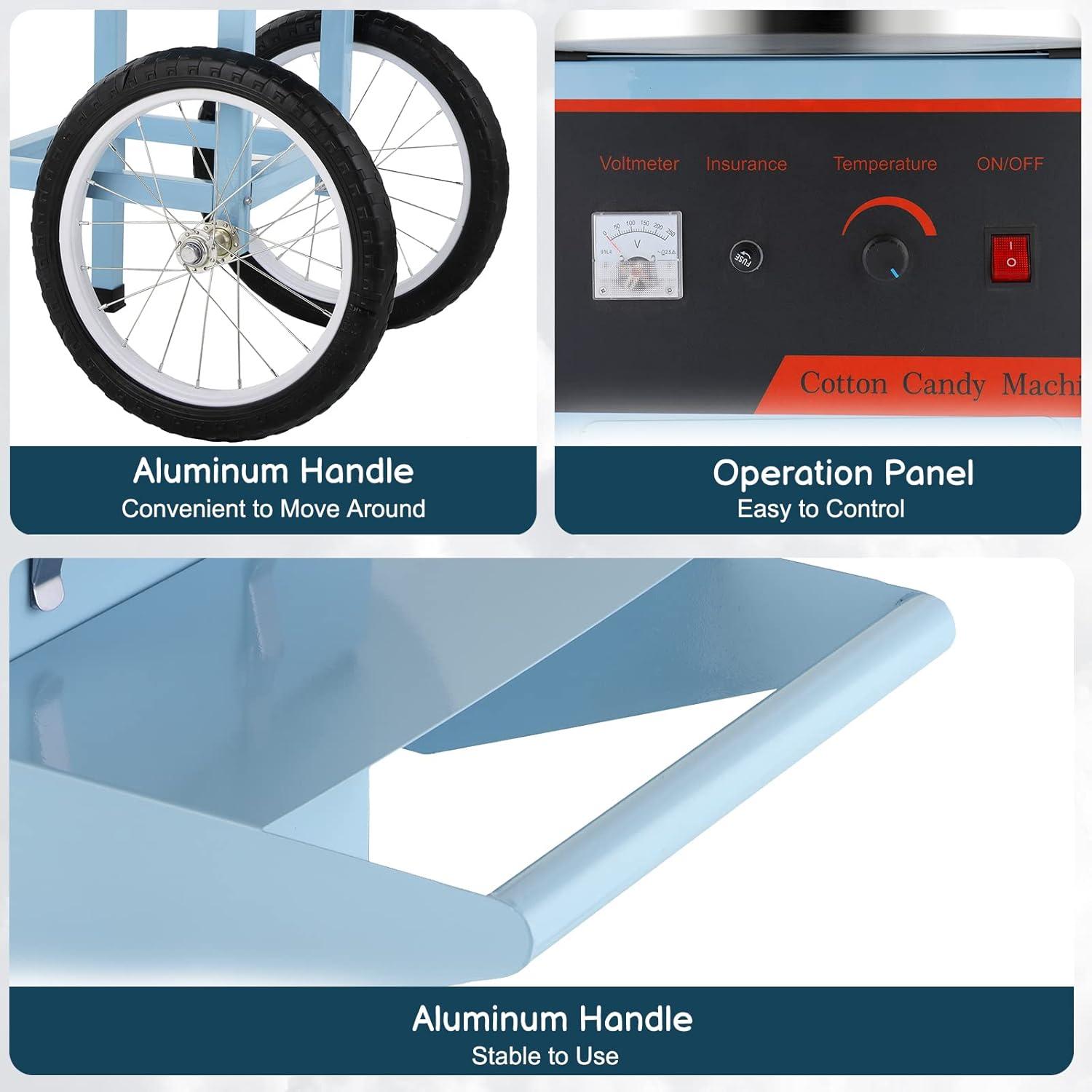 ROVSUN 21 Inch Cotton Candy Machine Cart, Electric Cotton Candy Maker Candy Floss Machine w/Cover, Stainless Steel Bowl, Sugar Scoop and Large Storage Drawer for Commercial Home Party Carnival, Blue(Blue-without Cover)