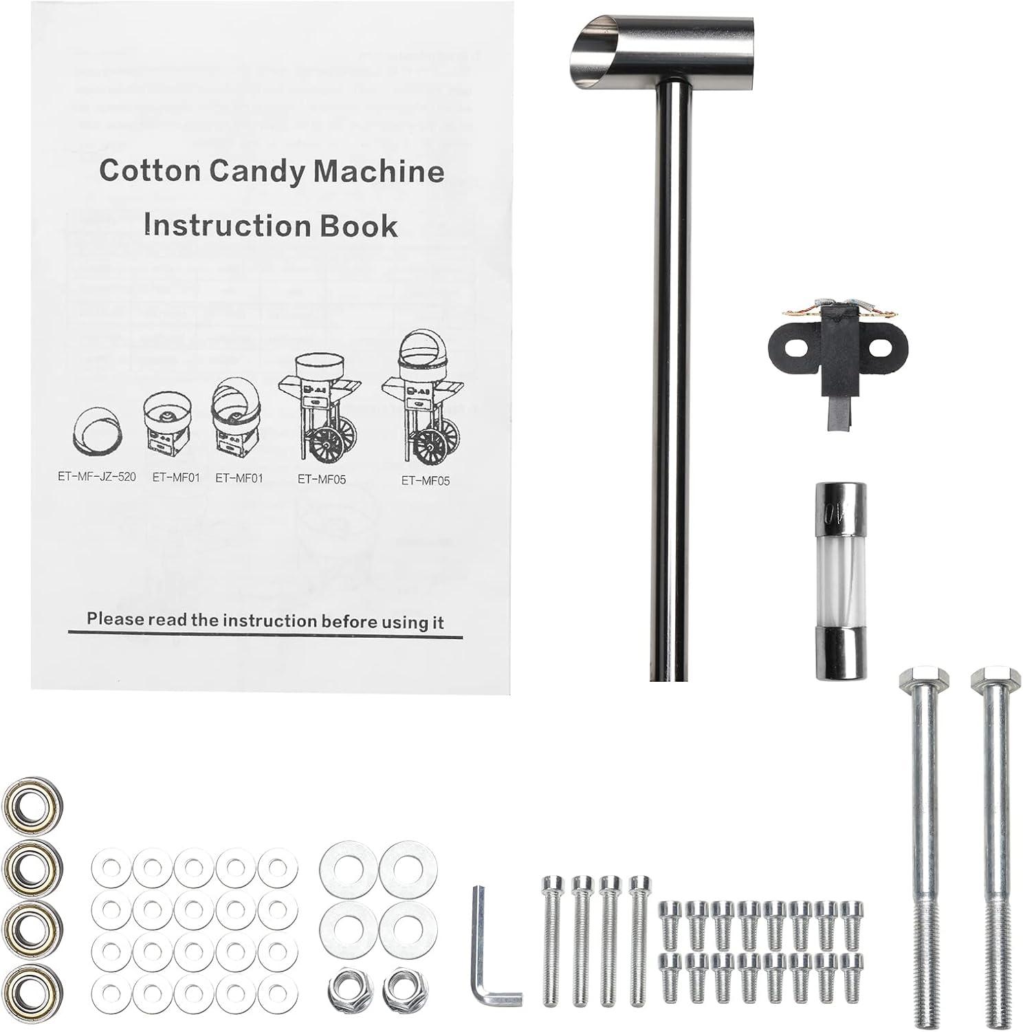 【High Efficiency】Equipped with 950W heating power and 30W motor power, our cotton candy makers only take a few minutes to heat up and produce up to 2-3 servings per minute. The fast spinning head can hold about 4oz. of sugar, which avoids repeated filling and makes process efficiently