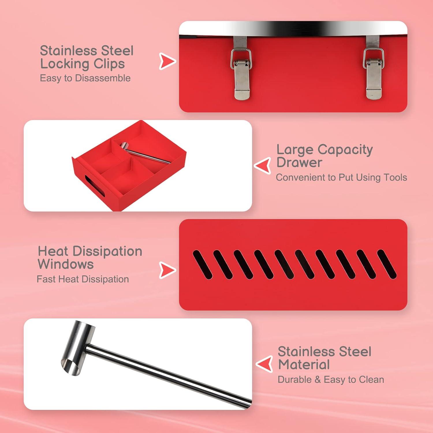 【Safe & User-friendly Design】Made of high quality stainless steel, the commercial cotton candy machine is durable and ensures food security. The aluminum candy outlet ensures even heating and prevents overheating. The built-in large capacity drawer provides extra storage space for sticks or other tools. Besides, we provide a free sugar scoop, which makes sugar pouring easily