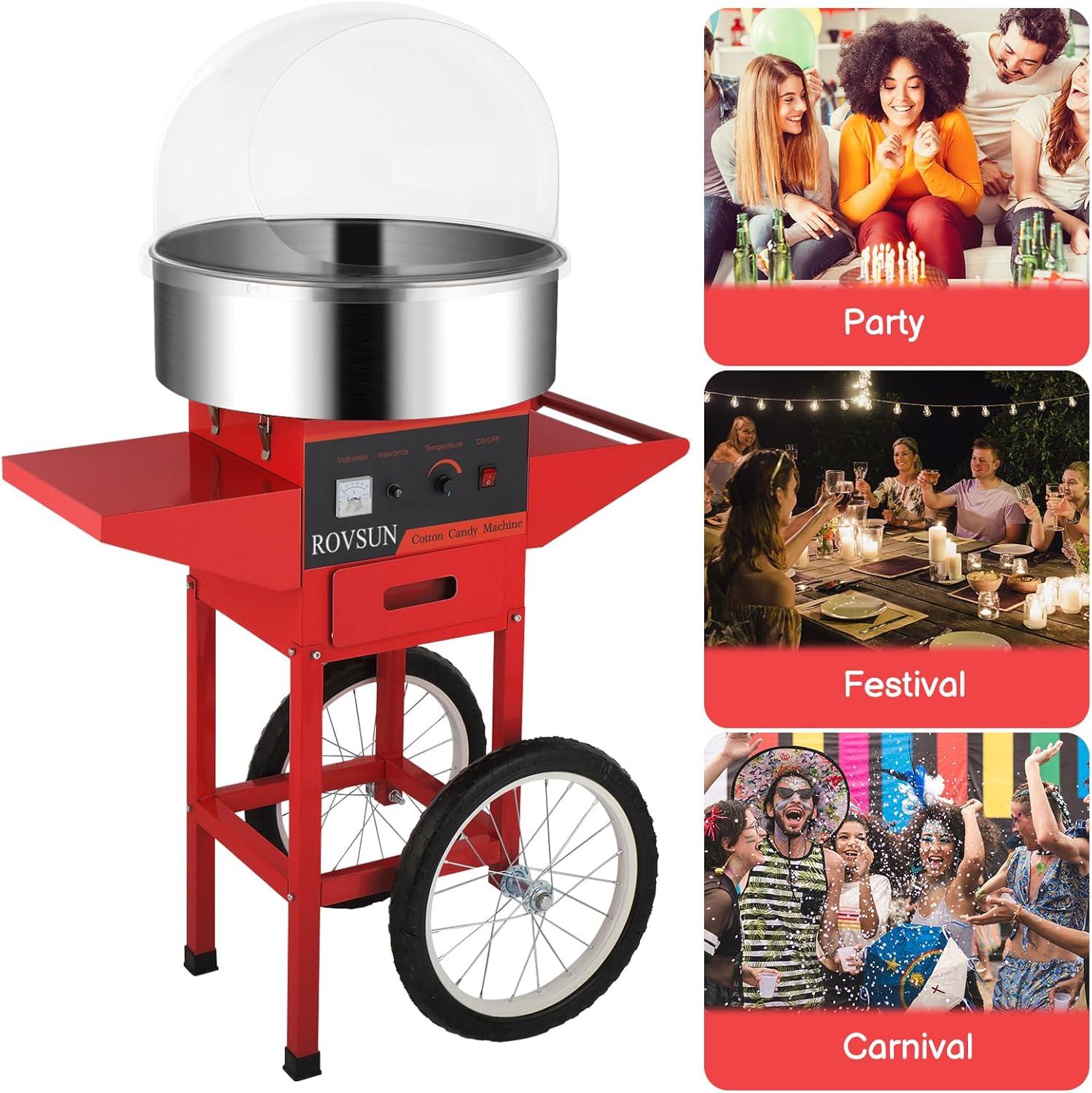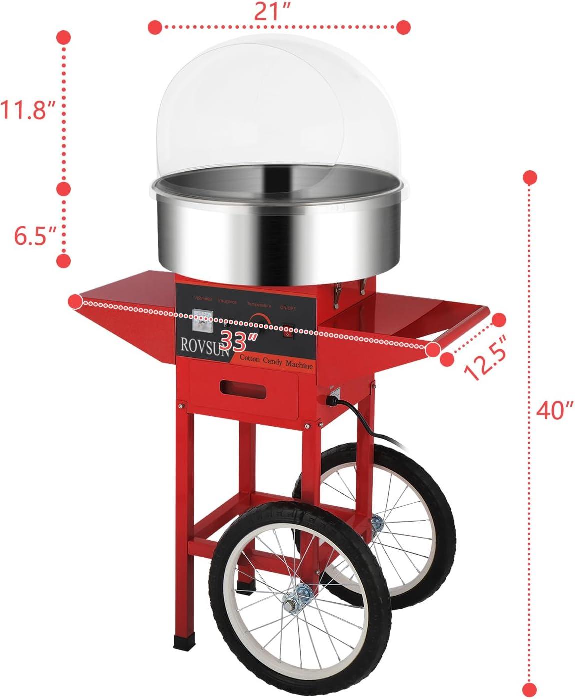 imageROVSUN 21 Inch Cotton Candy Machine Cart Electric Cotton Candy Maker Candy Floss Machine wCover Stainless Steel Bowl Sugar Scoop and Large Storage Drawer for Commercial Home Party Carnival PinkRedwithout Cover