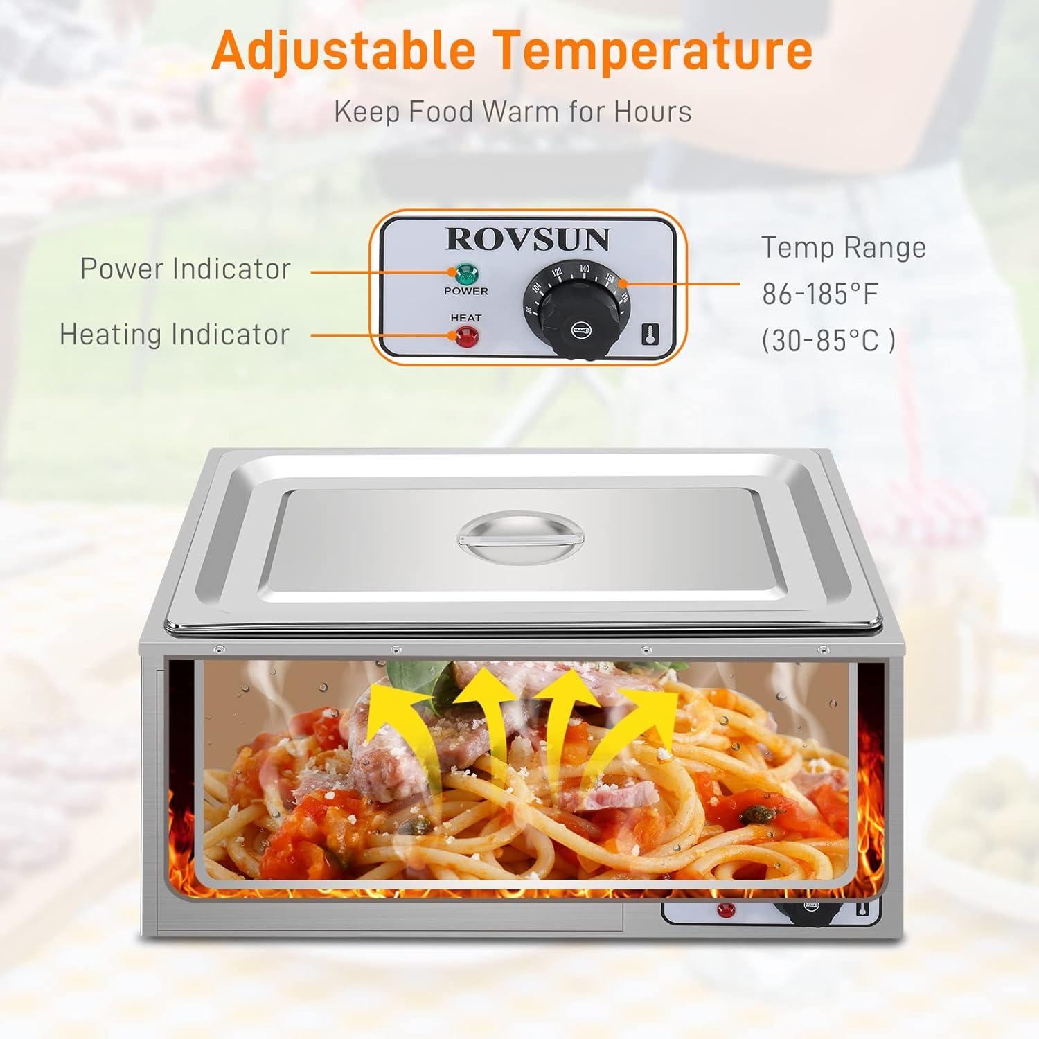 【Adjustable Temperature】Temperature can be adjusted from 86-185℉/30-85℃ through the knob, which makes it easy to quickly heat up your food and keep hot dishes at the ideal temperature. When the temperature rises to the set temperature, the heating system stops; otherwise it will start, which will save more energy and time for you