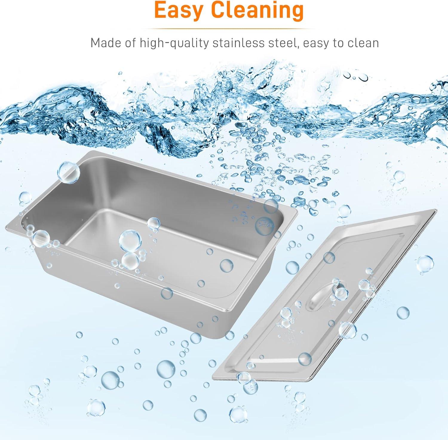【Special Faucet Design】Equipped with a considerate faucet, the steam table is easy to operate and clean. Injecting and heating water to keep food warmer. Long-term insulation keeps the delicious taste of the food. Just open the faucet to drain the water from the container and then you could clean the container. (Warm Tips: Do not dry the heating tube and submerge it in water.)