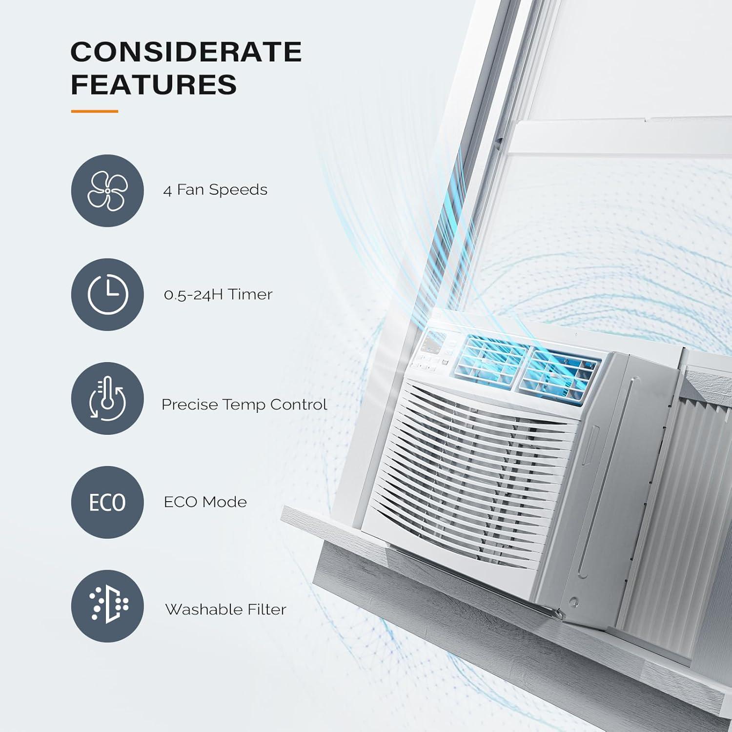 ✔ WIFI-Enabled & Voice Control: Beside of the panel & remote control, seamlessly integrate with phone APP or voice control (works with Alexa/Google Assistant); Set routines for optimal temperature changes allows you to adjust your window air conditioner from anywhere so that you can enjoy endless comfort immediately once arriving home
