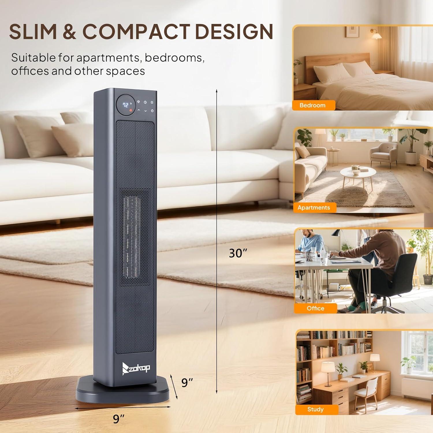 🔥Slim Design Saves Space: Its compact footprint allows this 23 inch hight small space heater to fit neatly into tight corners, making it a superb heater for indoor use in apartments, dorms, and under desks