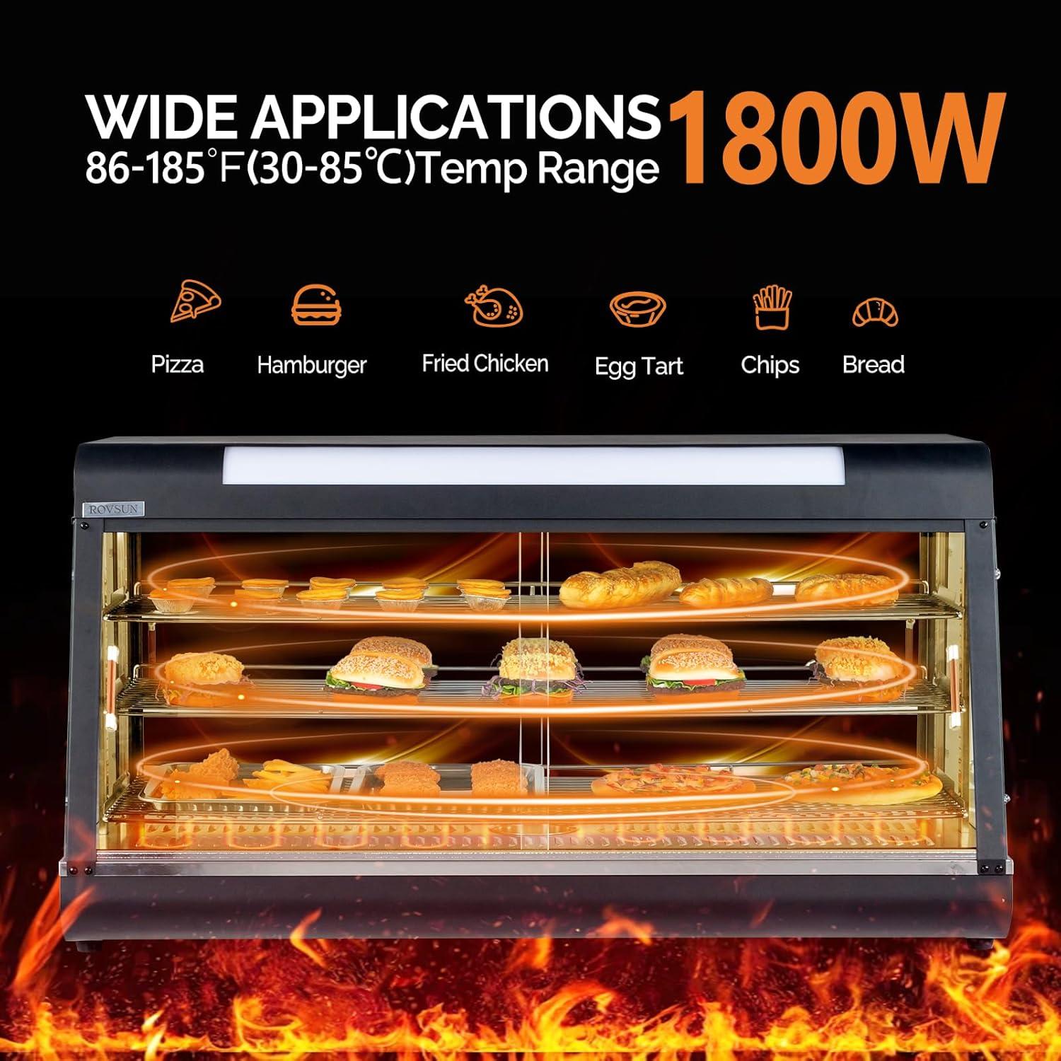 【Wide Application】The food warmer is perfect for concession stands, cafes, fast food restaurants, bakeries, canteens or other commercial use to keep milk, pizza, hamburger, etc. warm, or for self-serving at food courts, dining area, making your shop-front attractive