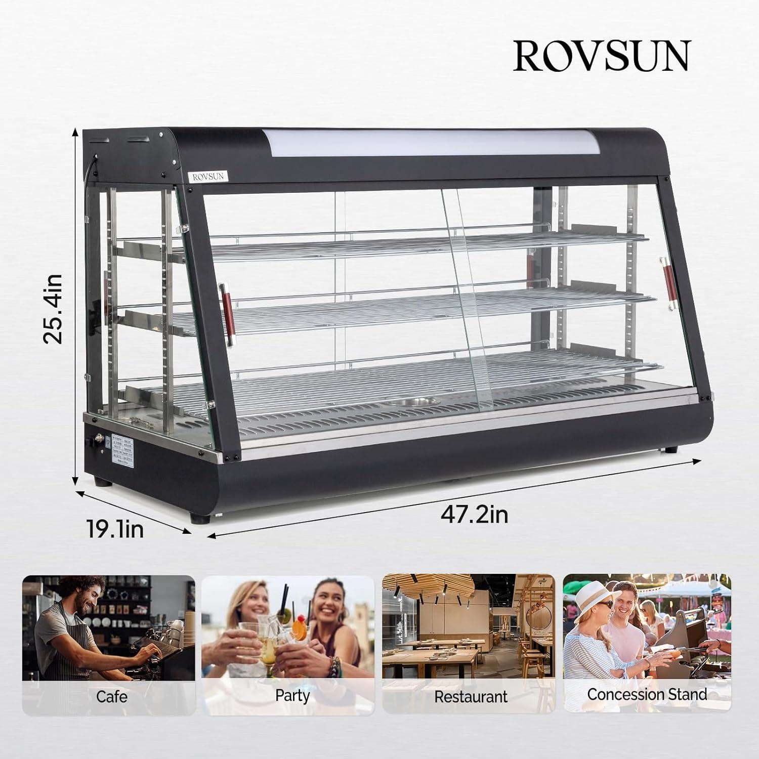 imageROVSUN 26quot Commercial Food Warmer Display Pizza Warmer 3Tier Electric Countertop Food Warmer wLED Lighting Adjustable Removable Shelves ampamp Glass Door Pretzel Warmer for Buffet Restaurant 1200W48 Length