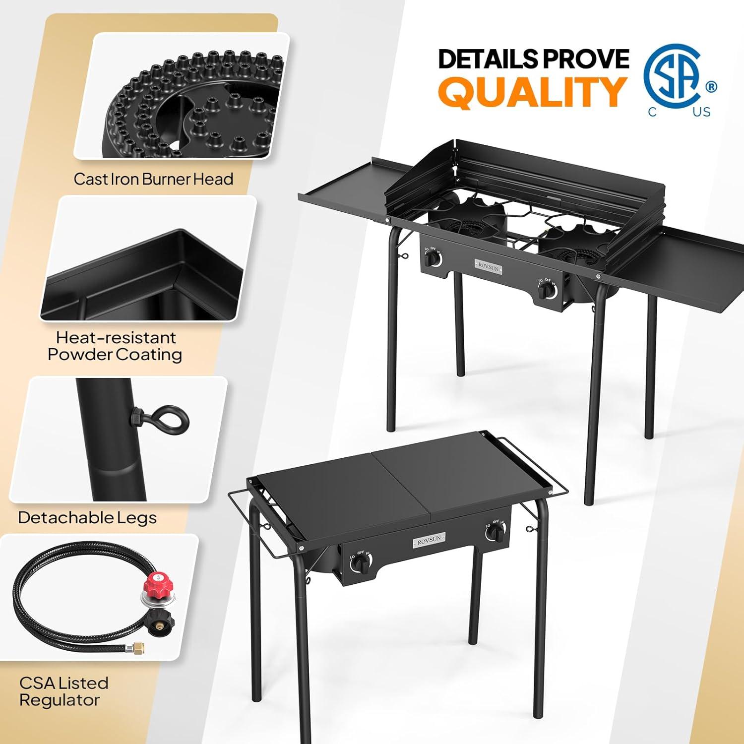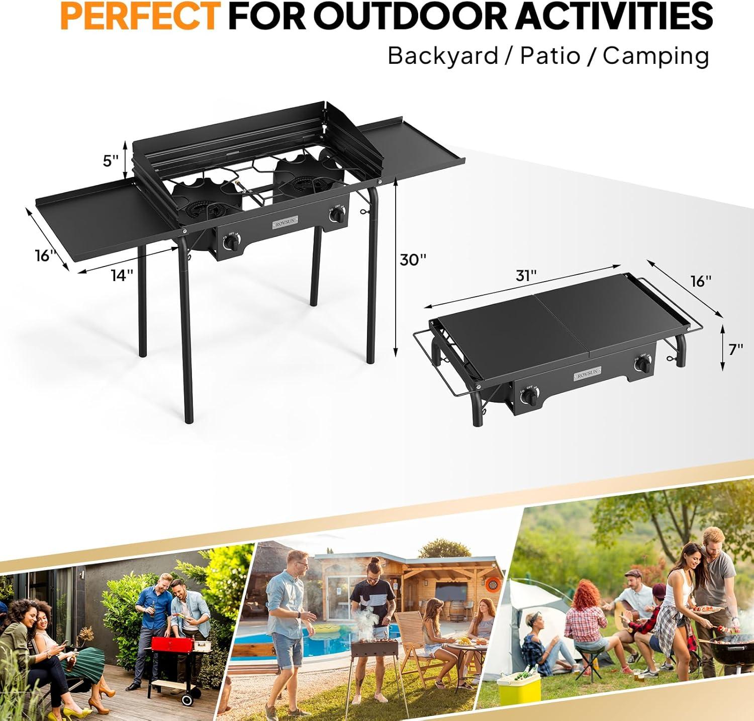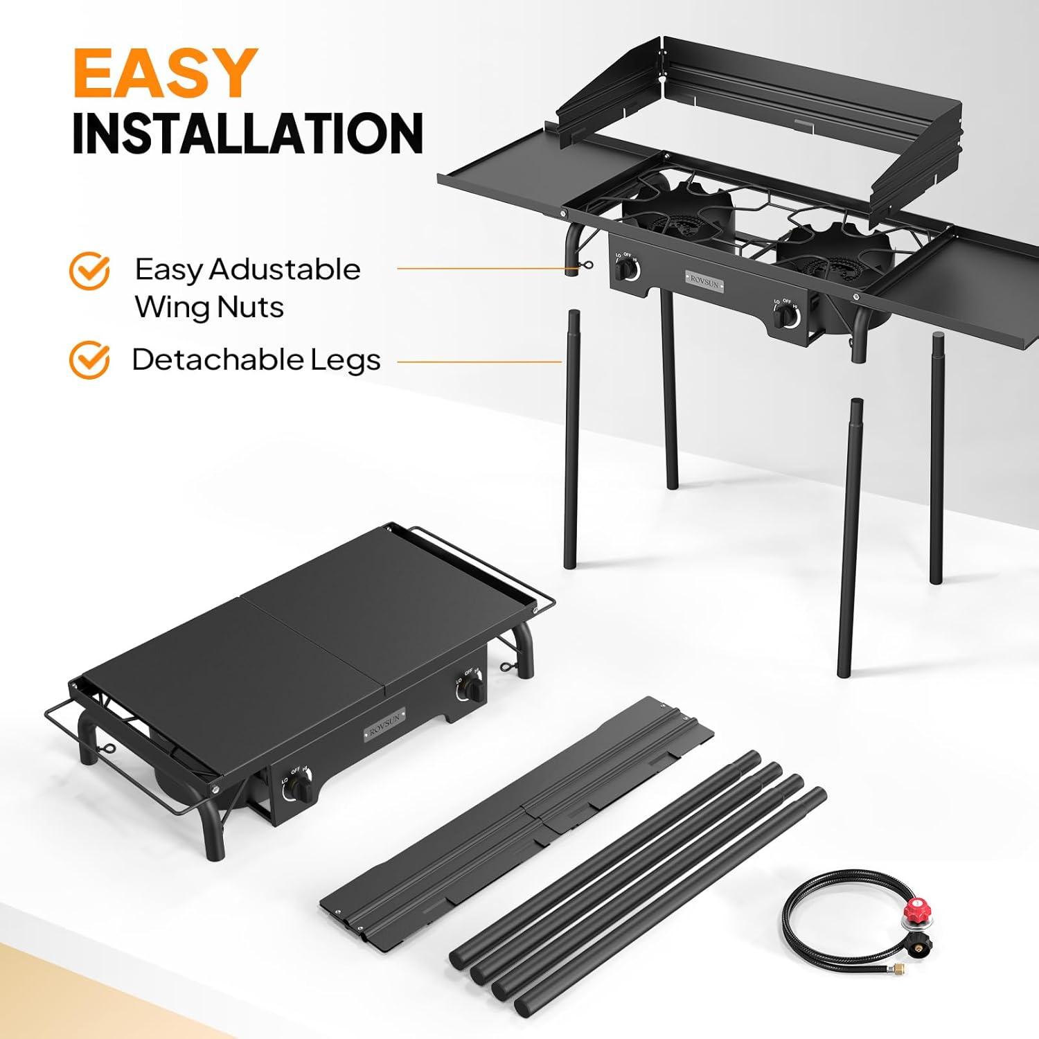 POWERFUL COOKING BUDDY ★ With durable material & 225,000-BTU high output burners to work with, this burner stove makes camp cooking easily and works well for outside; Perfect for outdoor parties cooking, brewing, camping, fishing, etc.