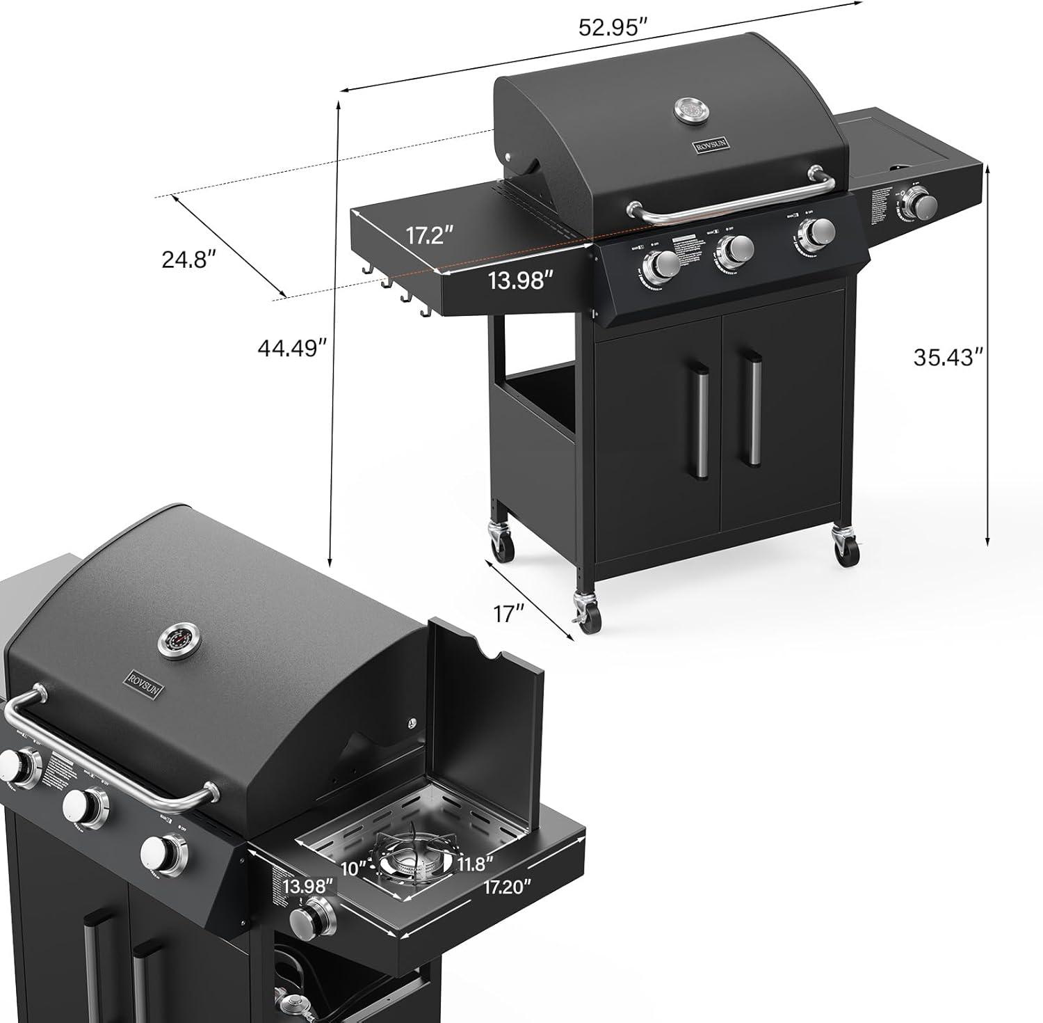 Be the first to review “ROVSUN 3 Burner Propane Gas Grill with Foldable Side Shelves, 36000BTU BBQ Grills with Enameled Cast Iron Grates, Cabinet & Poratable Rolling Wheels for Outdoor Garden Patio Backyard Barbecue Cooking(3 Burner with Side Burner)”