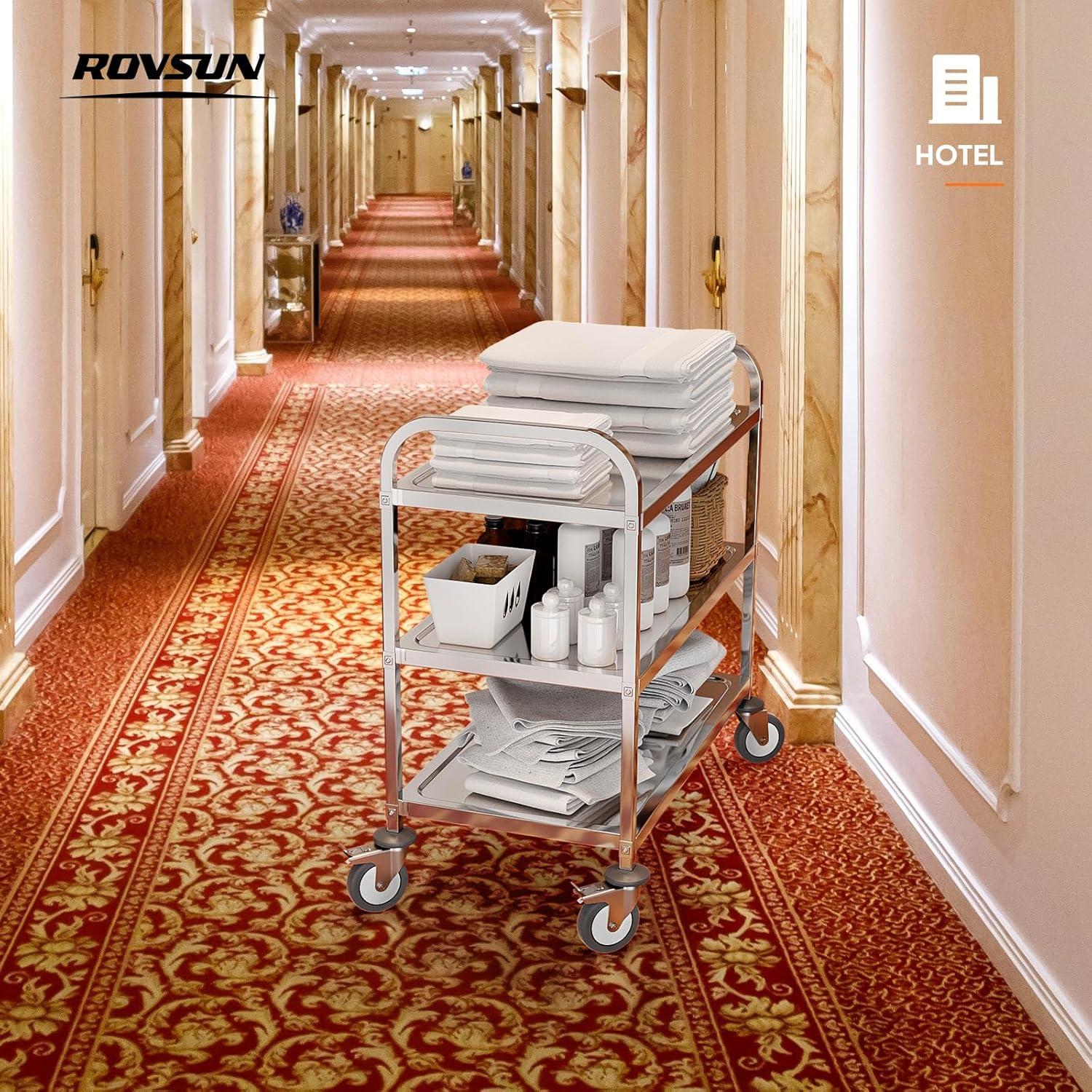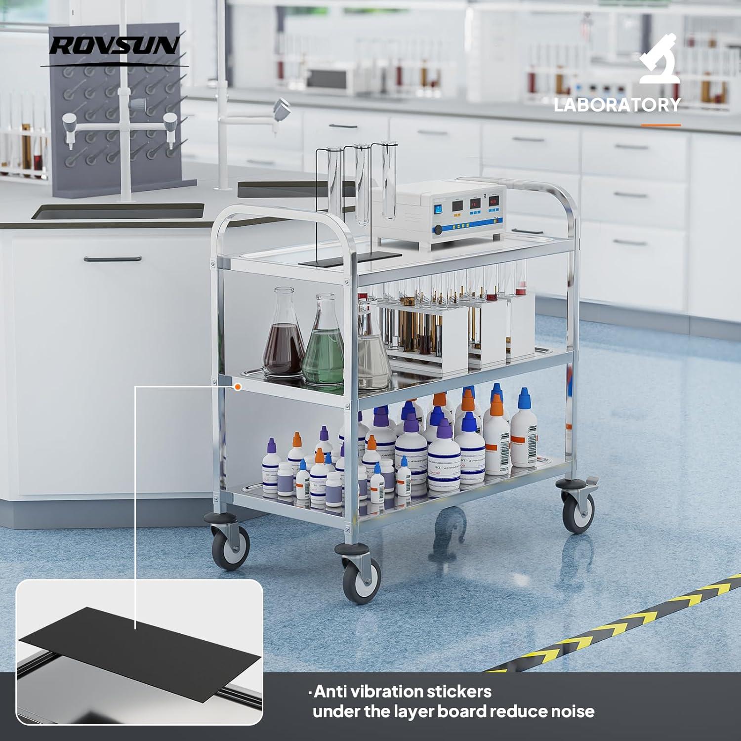 imageROVSUN 3Tier Stainless Steel Utility Cart with Wheels Commercial Rolling Serving Cart 330lbs Capacity Kitchen Trolley Storage Shelf for Restaurant Office Warehouse 175quot D335quot W35quot H Silver