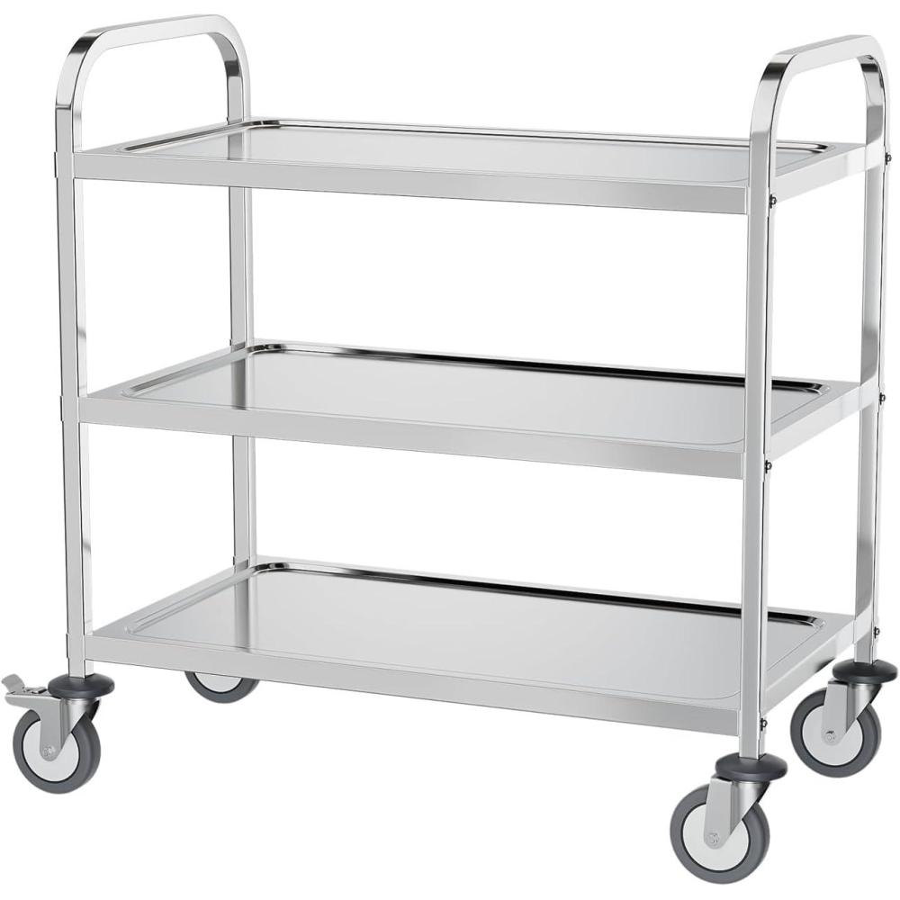 ROVSUN Stainless Steel Utility Cart, 3 Tier Commercial Rolling Cart with Wheels and Handle, Heavy Duty Storage Tool Cart for Kitchen Restaurant Hospital Laboratory and Home, 24″L x 16″W x 33″H, Silver