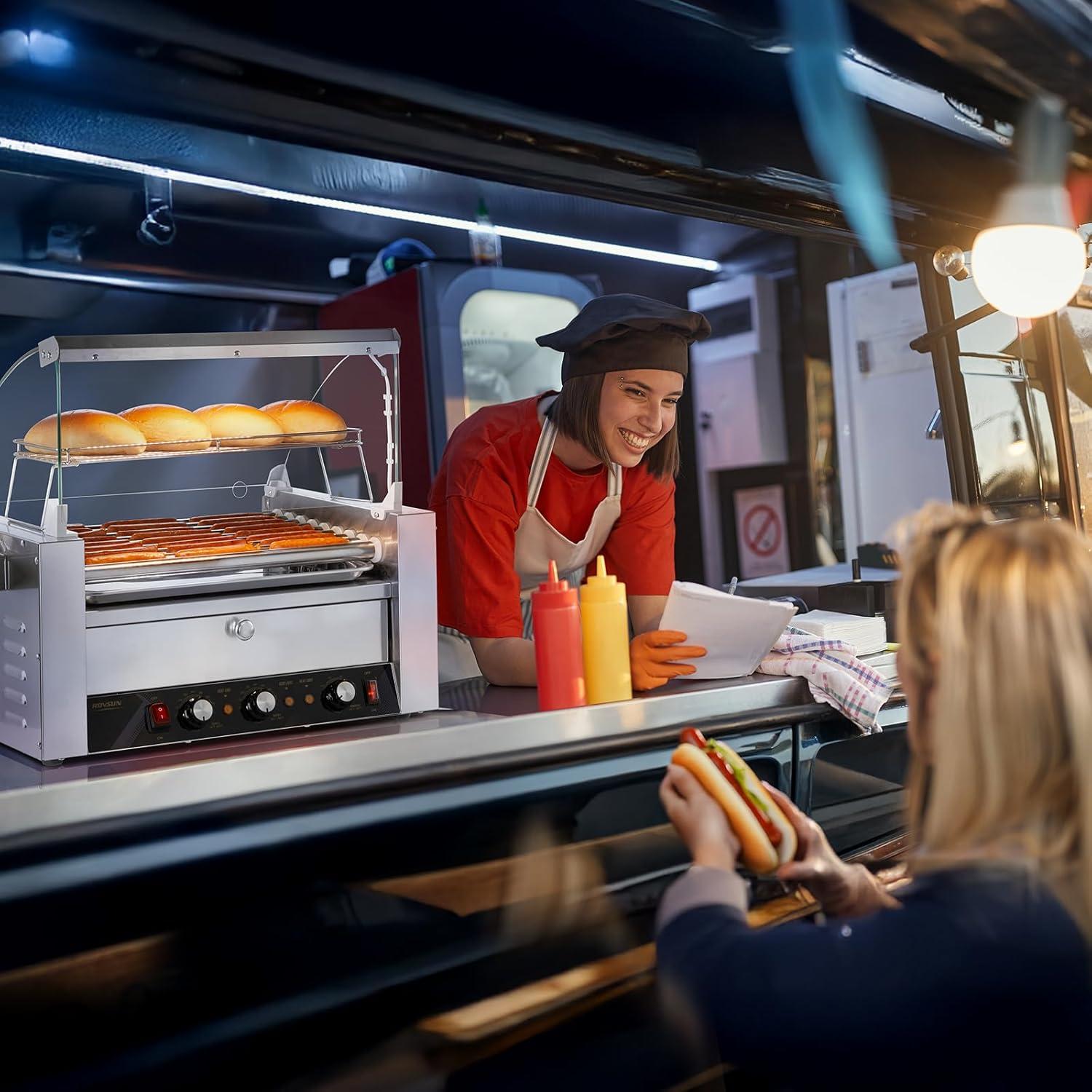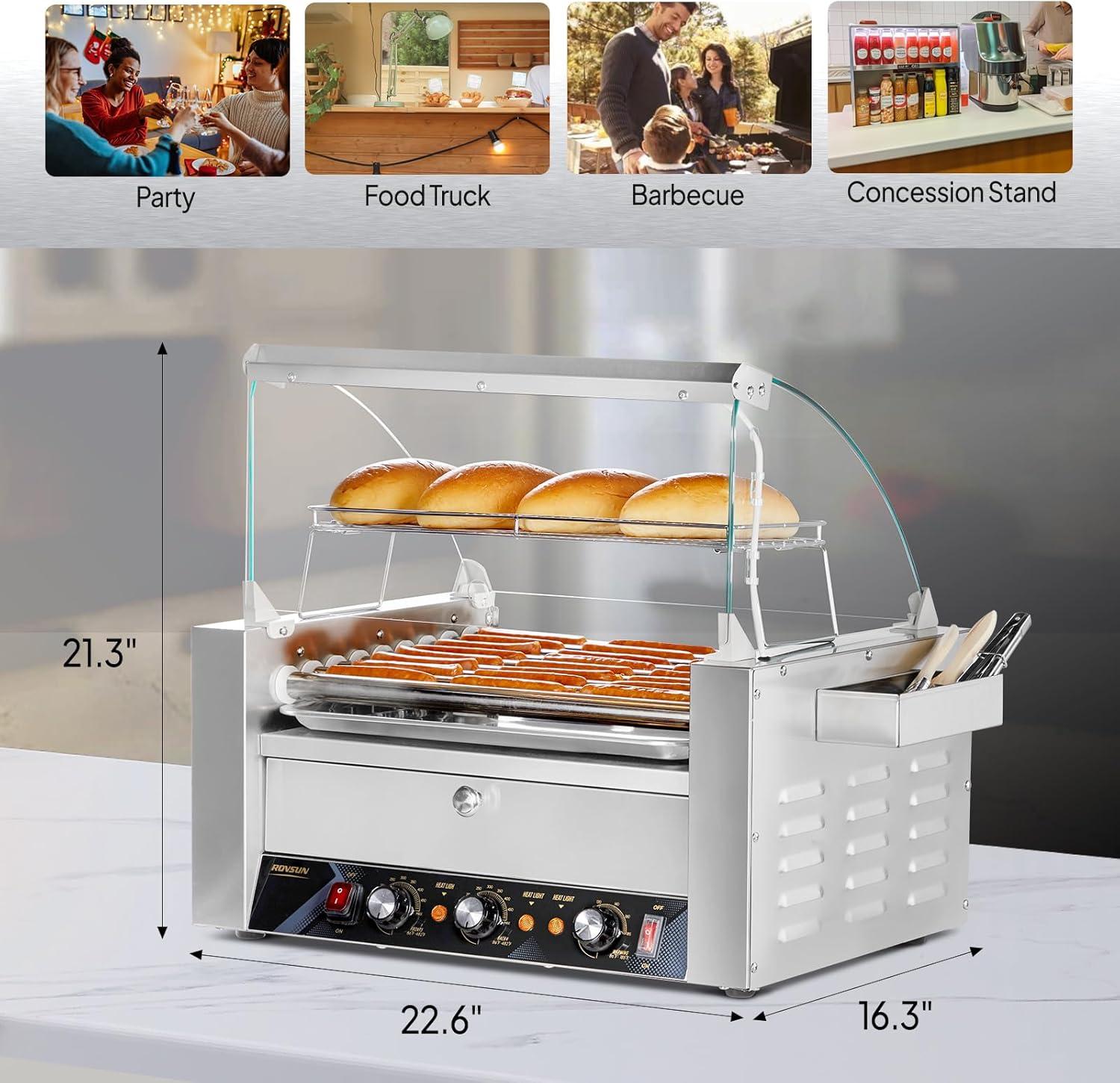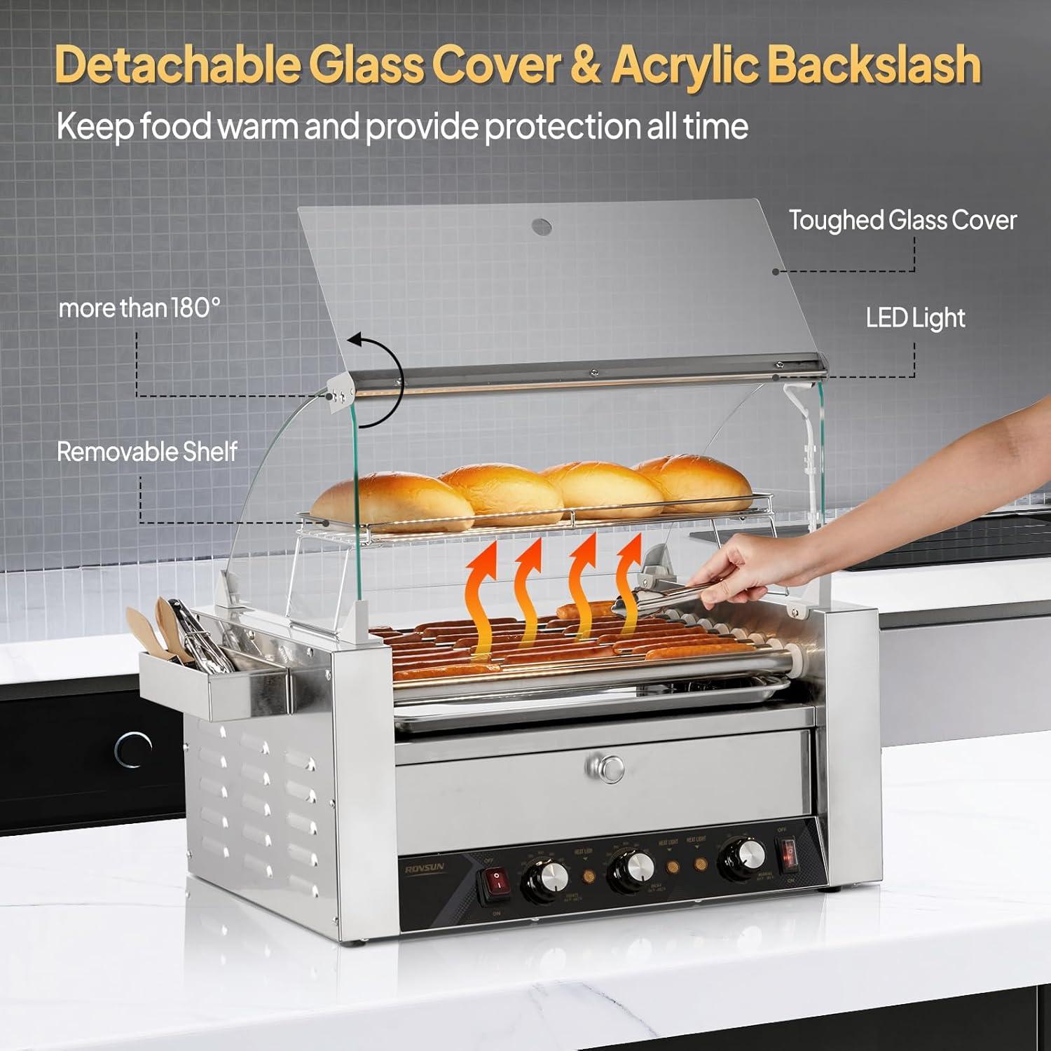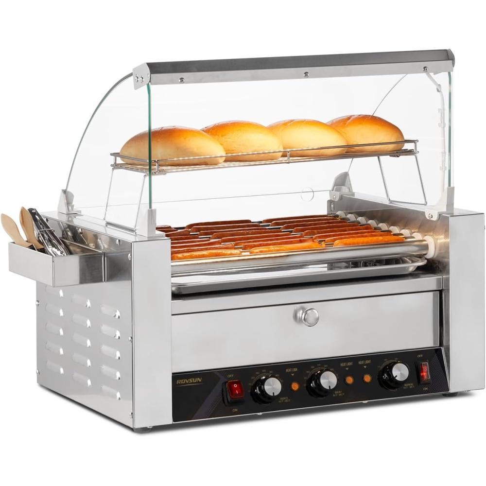 imageROVSUN 30 Hot Dog 11 Roller Hot Dog Roller Warmer Grill Cooker Machine wBun Warmer Cover Dual Temp Control LED Light Removable Shelf ampamp Drip Tray for Party Home Commercial 2000W ETL Certified9 Roller
