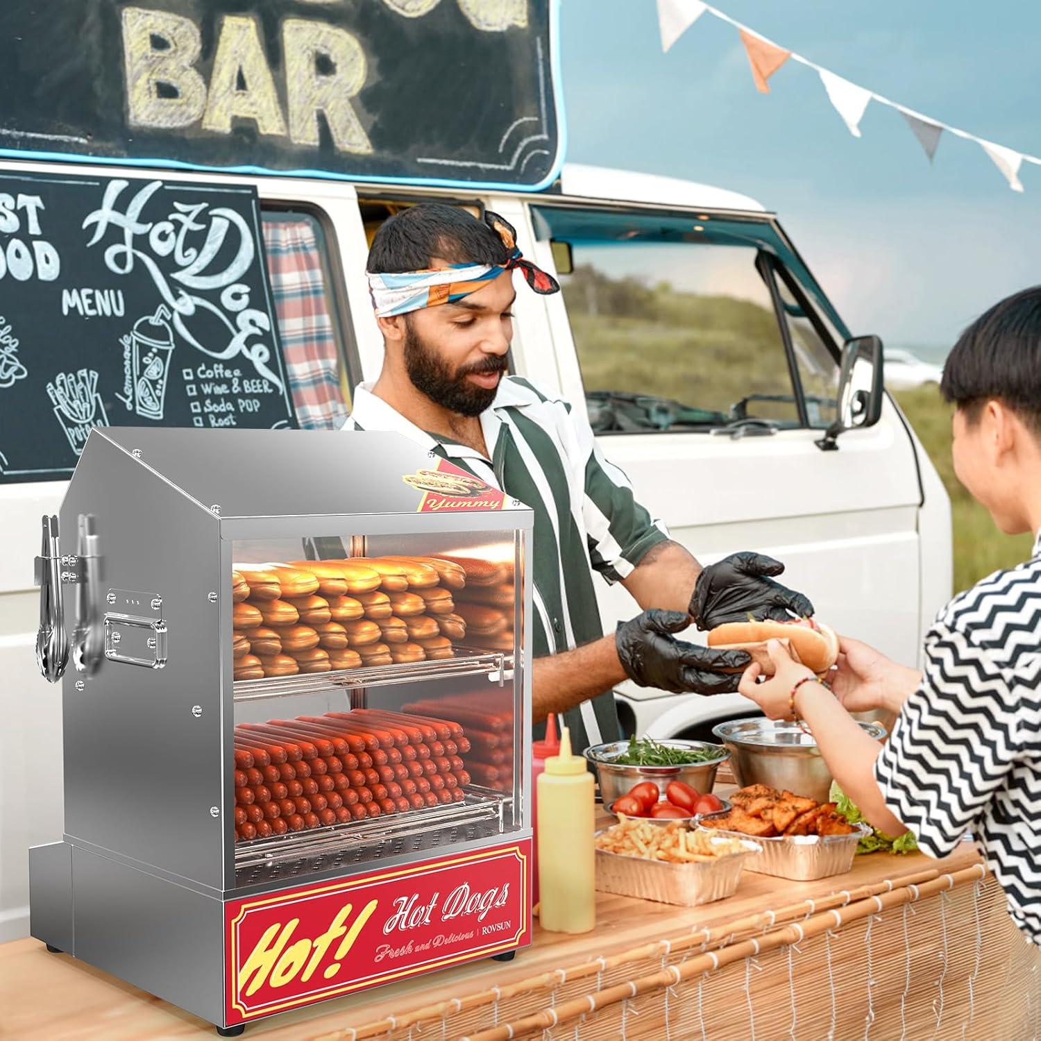 【Wide Usage】The hot dog steamer with bun warmeris perfect for parties, concession stands, movie nights, carnivals, and vending carts to keep your hot dogs at perfect serving temperature and humidity all day
