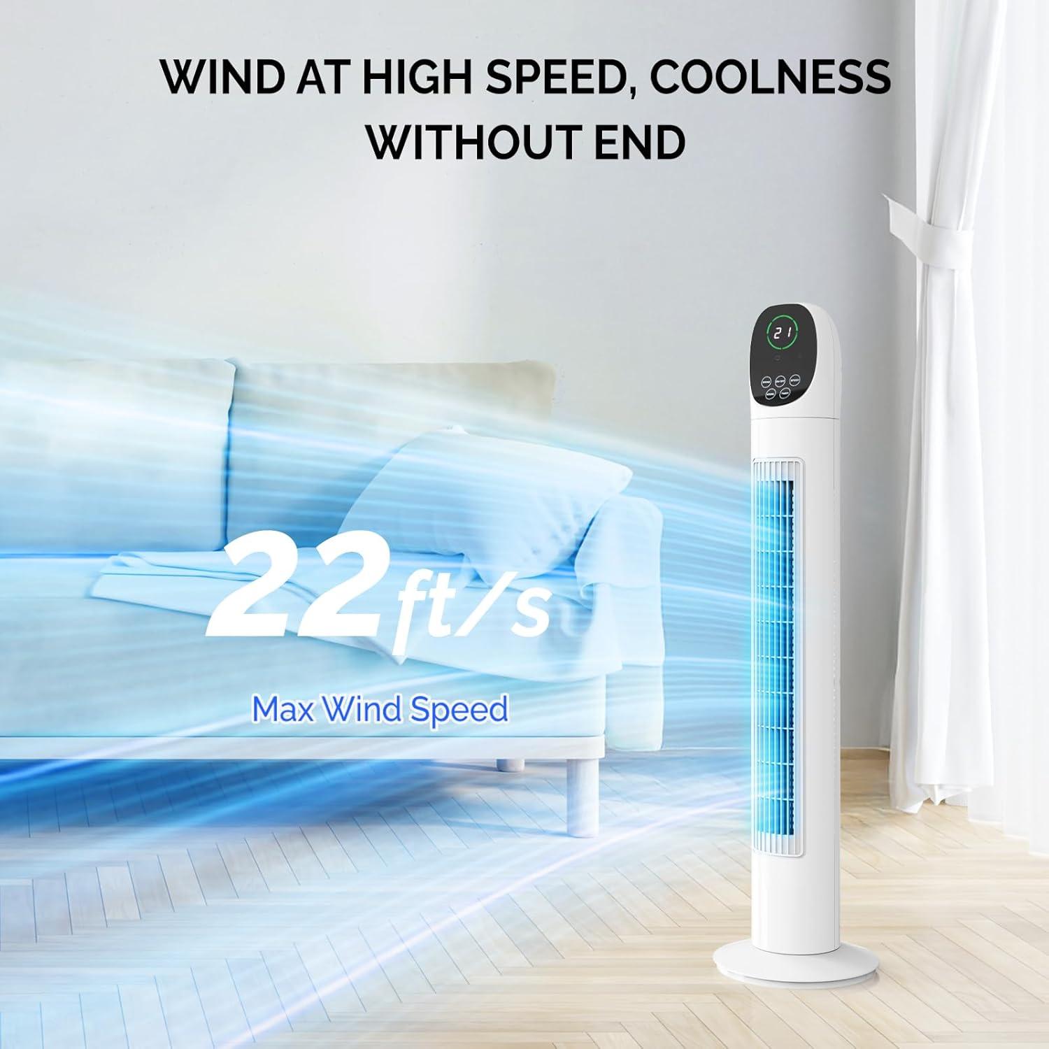【Powerful 3 – Speed Adjustment】This tower fan with three adjustable wind speeds, this product offers a maximum wind speed of 22ft/s. Whether you need a gentle breeze or a strong gust, it can meet your different needs