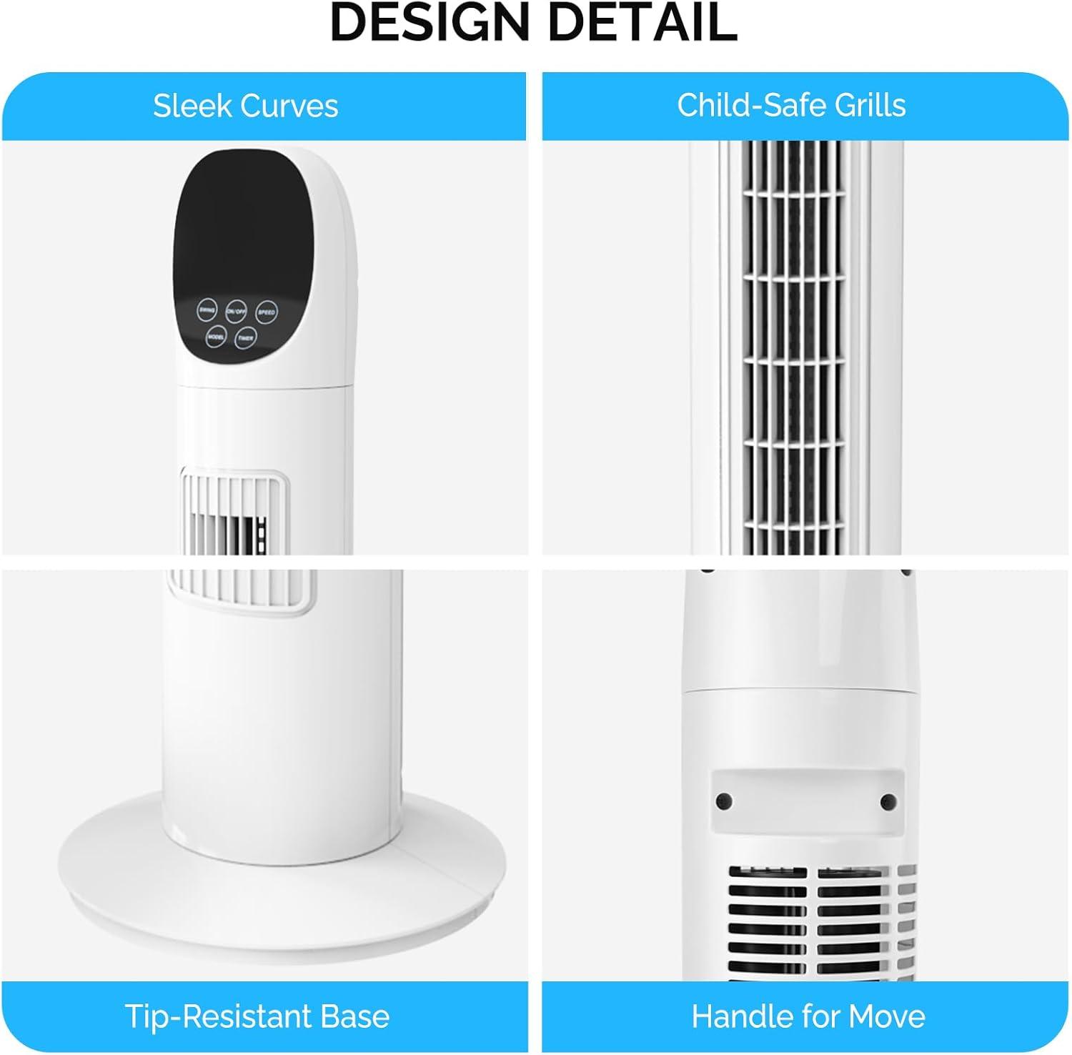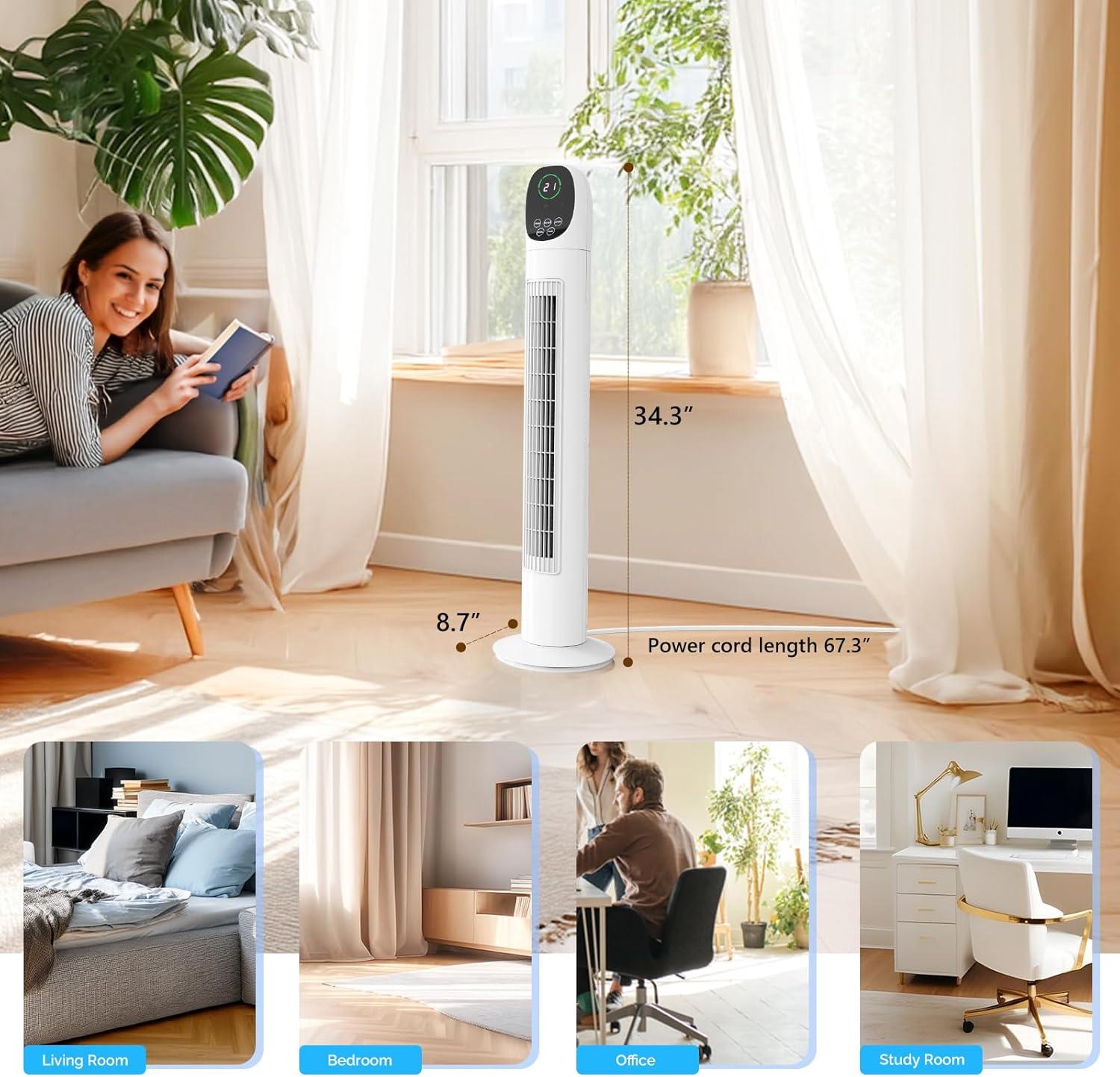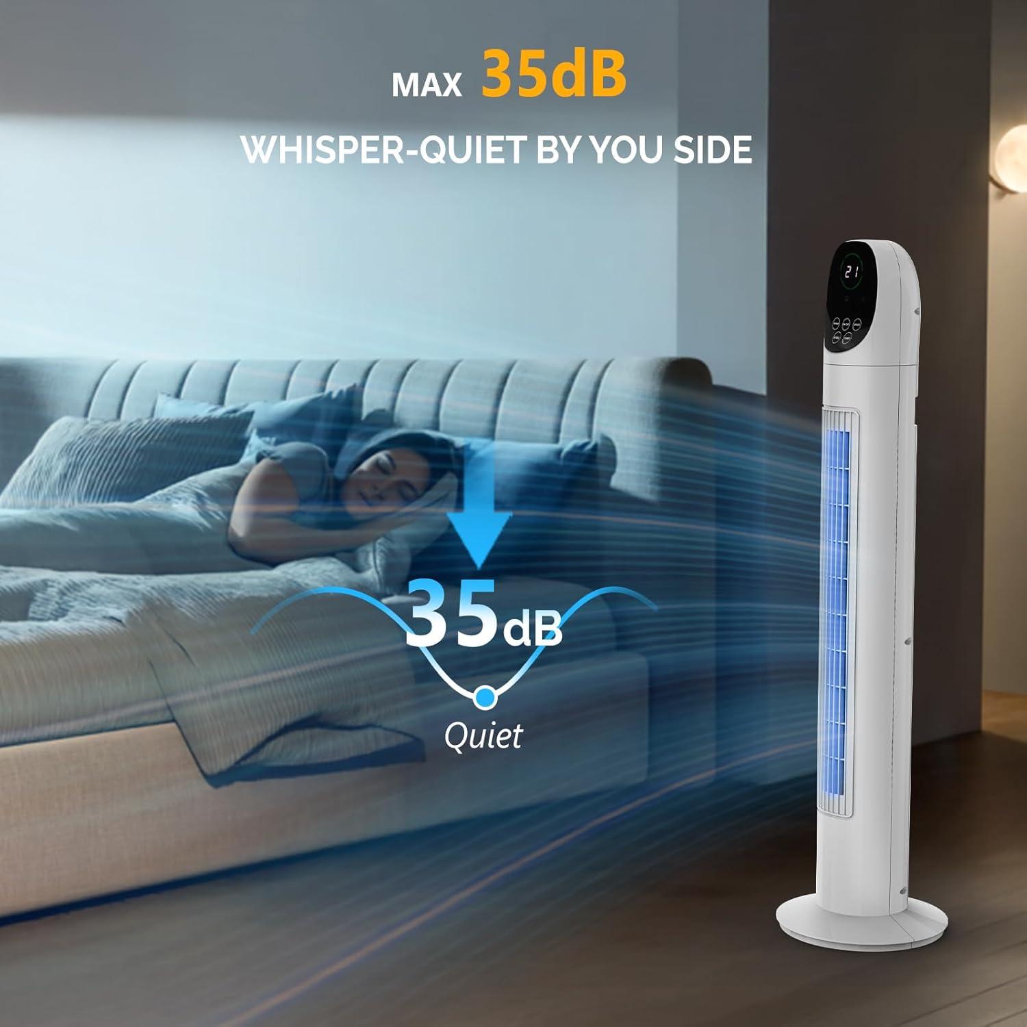【Quiet & Comfort Cooling】With 35dB low noise, you can rest at your bedroom all night long without any disturbances. Combine the tower fan with your AC unit for faster and more efficient air movement. Helping you stay cool in the summer heat