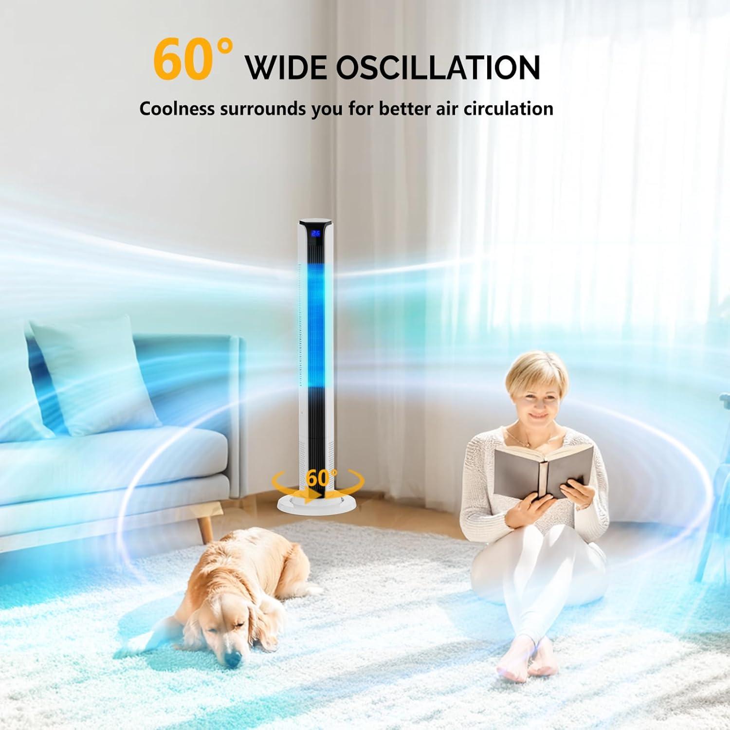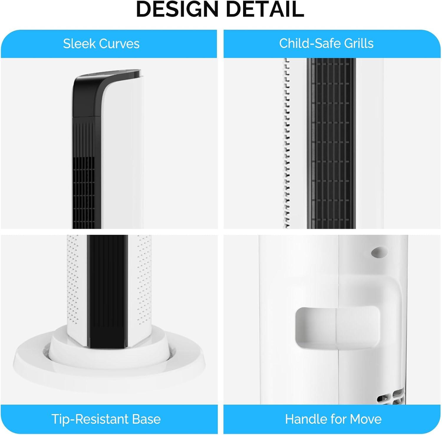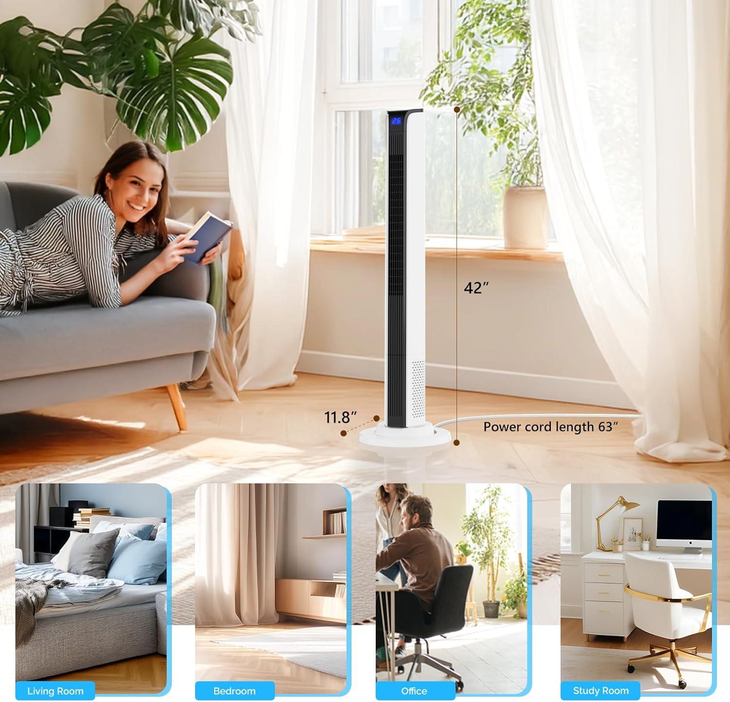 【Quiet & Comfort Cooling】With 35dB low noise, you can rest at your bedroom all night long without any disturbances. Combine the tower fan with your AC unit for faster and more efficient air movement. Helping you stay cool in the summer heat