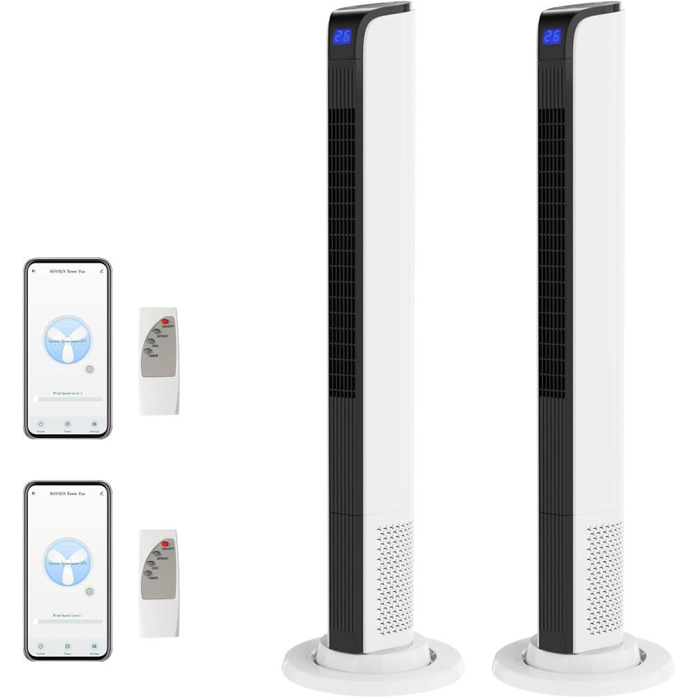 ROVSUN 34" Tower Fan with Remote Control, Bladeless Floor Fan with 3 Modes 3 Speeds & Digital Display, Standing Fan with Oscillating, 9H Timer, Quiet Fan for Cooling Bedroom, Home, Office(42"(2-pack))