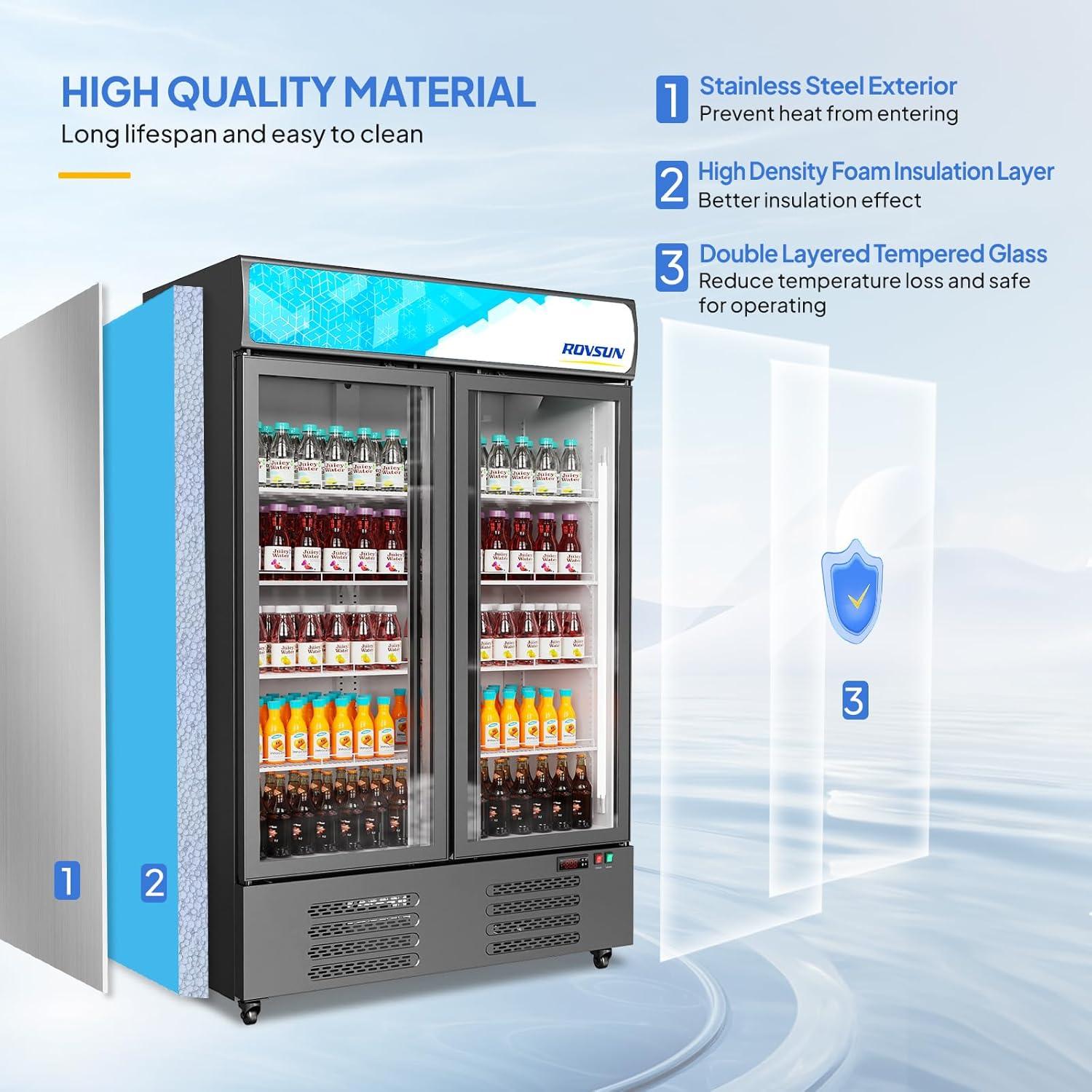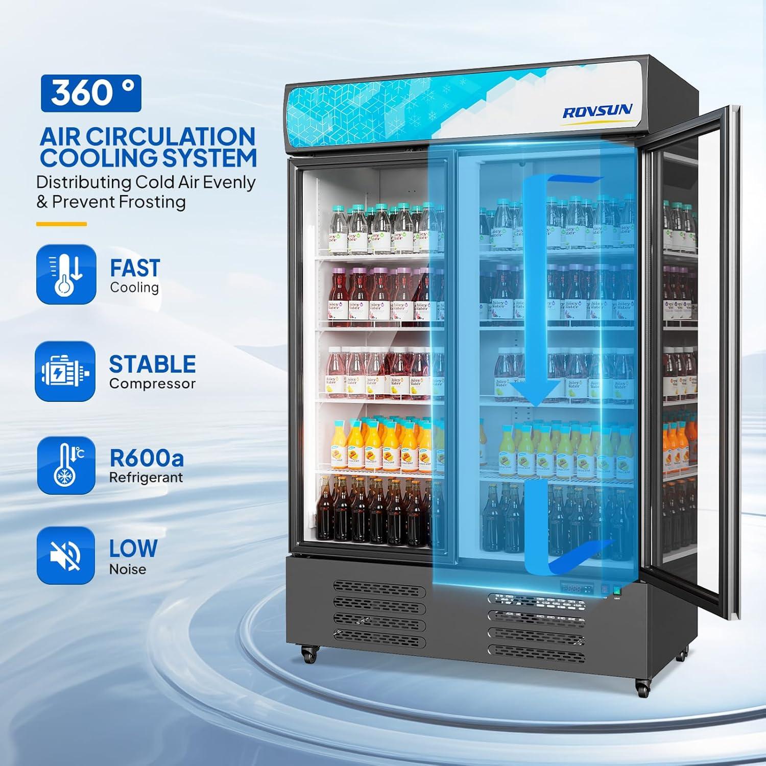 imageROVSUN 35 CuFt Commercial Refrigerator Display Refrigerator ETL NSF Certified Commercial Beverage Cooler Glass Door Merchandiser Drink Fridge wAdjustable Shelves LED Light for Bar Restaurant35 CuFt