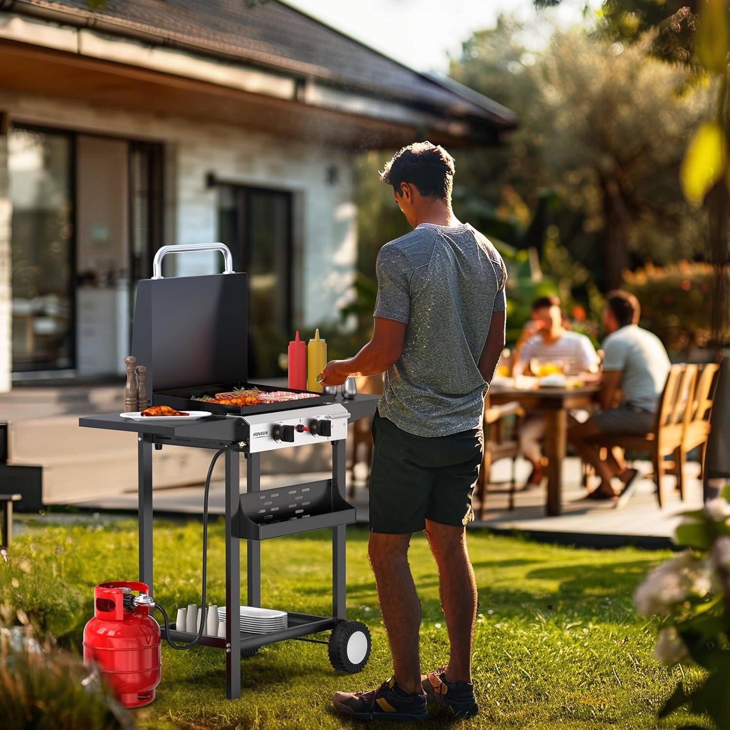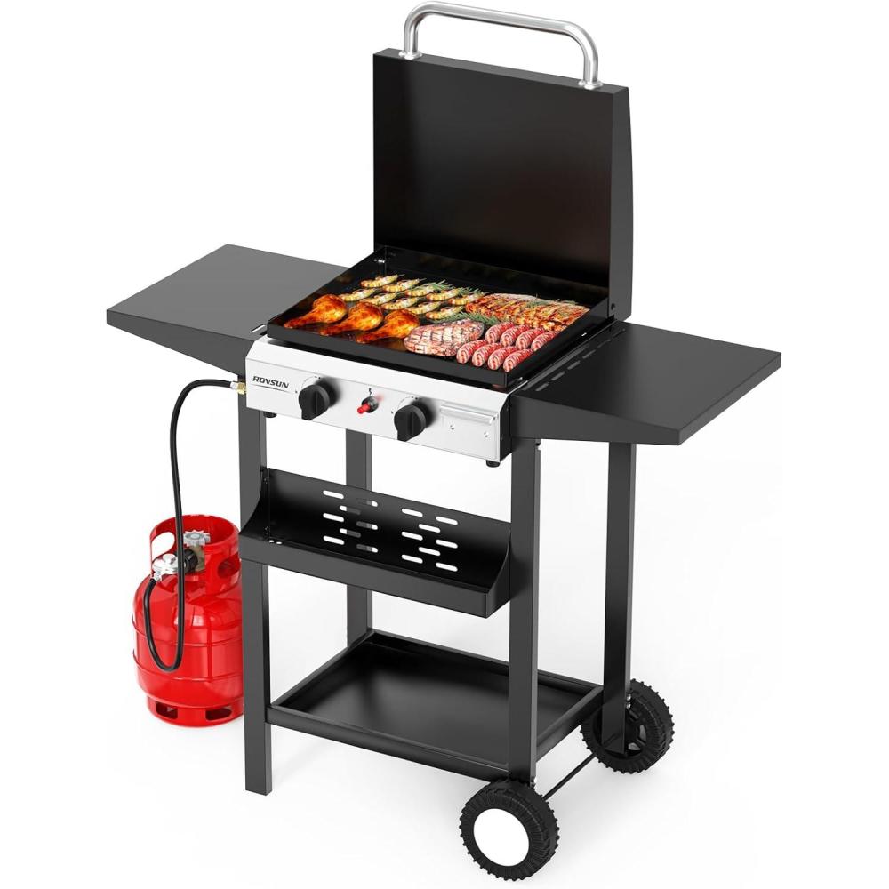 imageROVSUN 4 Burner Portable Propane Griddle with Enameled Tray ampamp Lid 40000 BTU Tabletop Flat Top Gas Grill with Electronic Ignition ampamp Regulator for Outdoor Cooking Camping BBQ Tailgating2 Burner  Freestanding