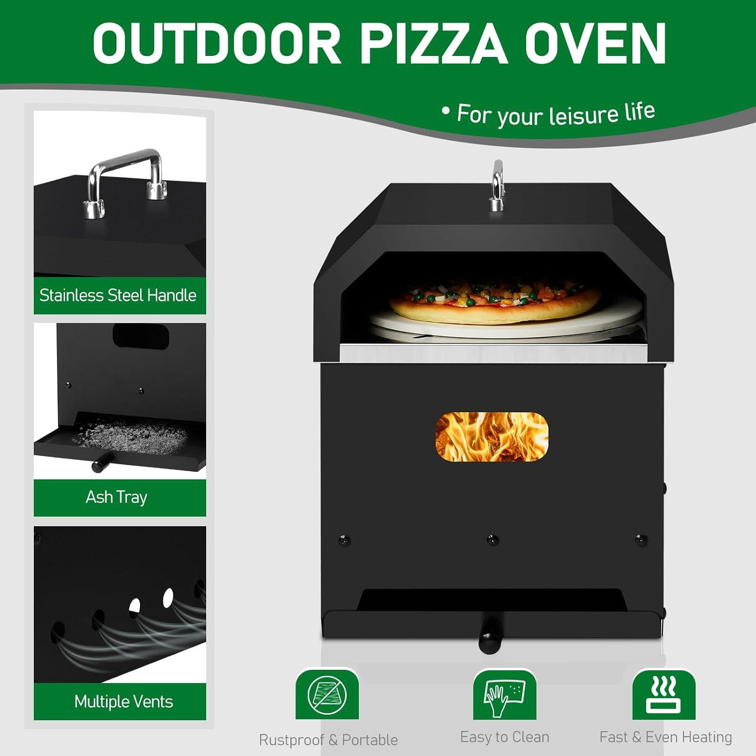 Portable and rustproof: With a lightweight design and a portable cooking rack included, you can enjoy freshly baked pizza anytime, whether it's a backyard barbecue, camping trip, or a get-together on your balcony. Made of rust-resistant materials for long-lasting durability, an ideal choice for outdoor enthusiasts.