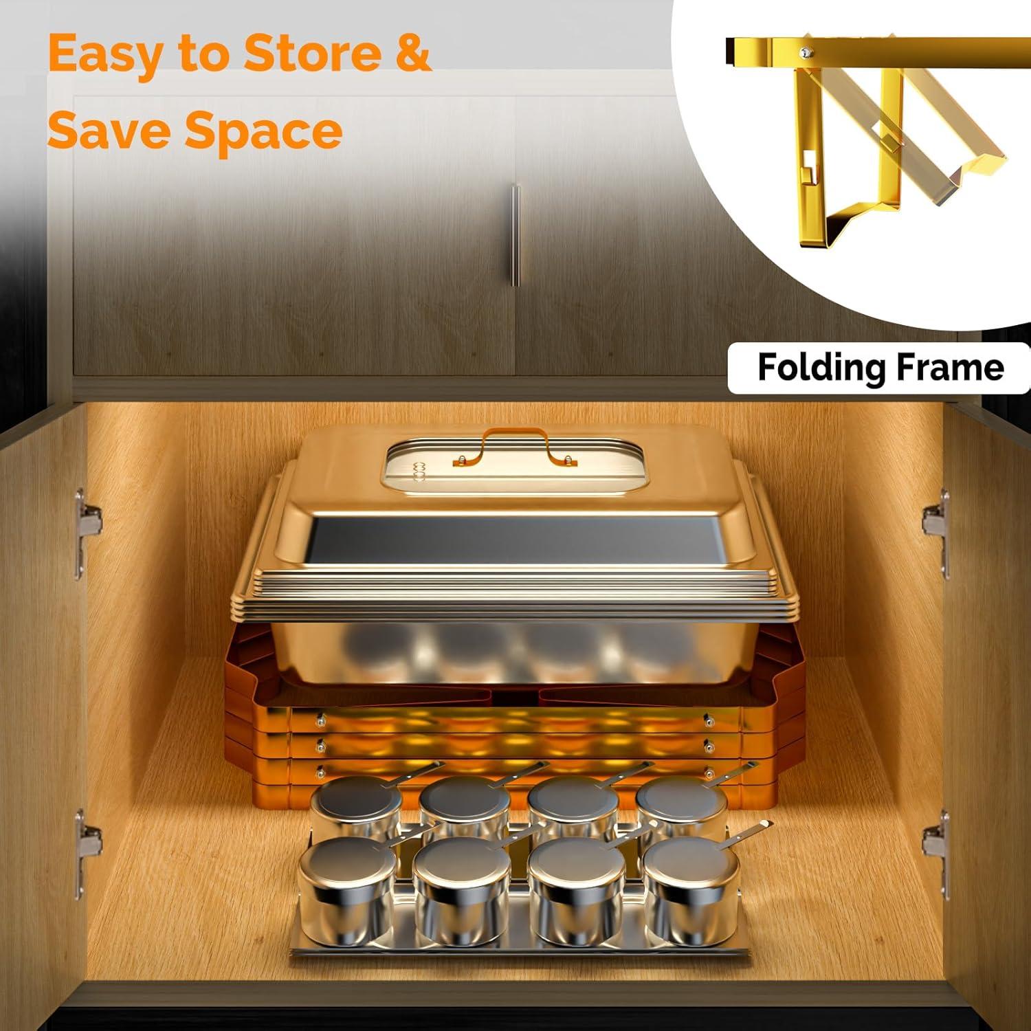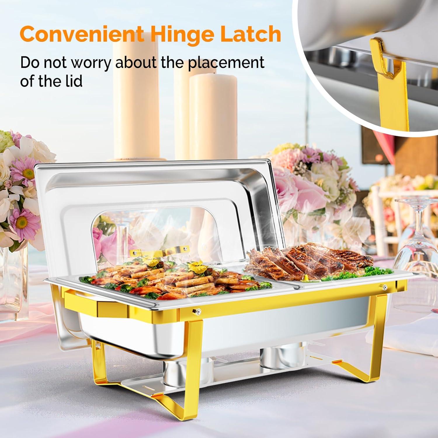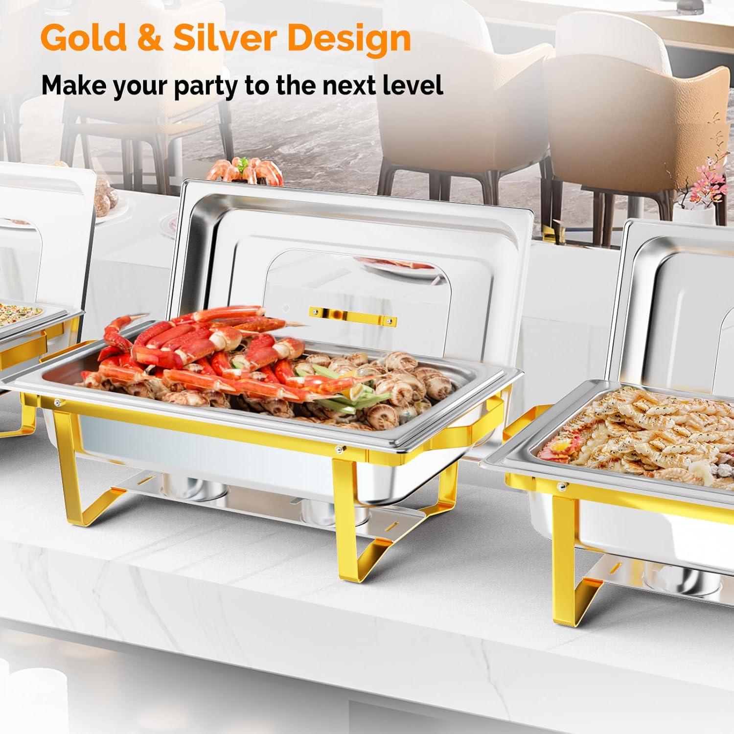【Elegant Gold & Silver Design】Features with gold design create a textured metal sense, elegantly display catering food straight from the oven onto the buffet table, bring an elegant touch to any upscale event.Exquisite design will get a lot of compliments from guests at your party.