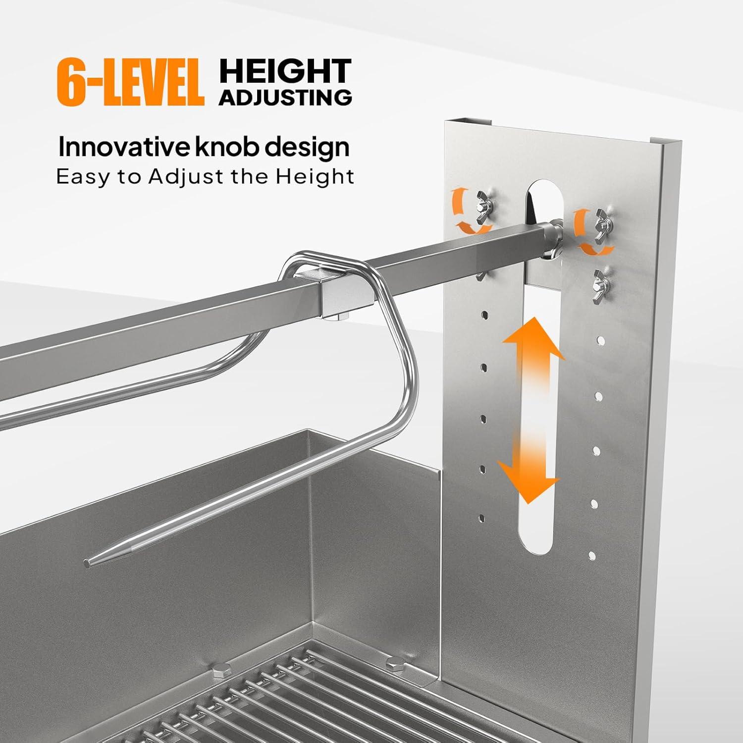 √ Versatile Roasting Options – With this 2 in 1 BBQ grill rotisserie, you can either manually rotate the barbecue spit using the handle or install the motor for automatic rotation. Height could be adjusted per your need to grill different foods. Extra vents for efficient heat dissipation