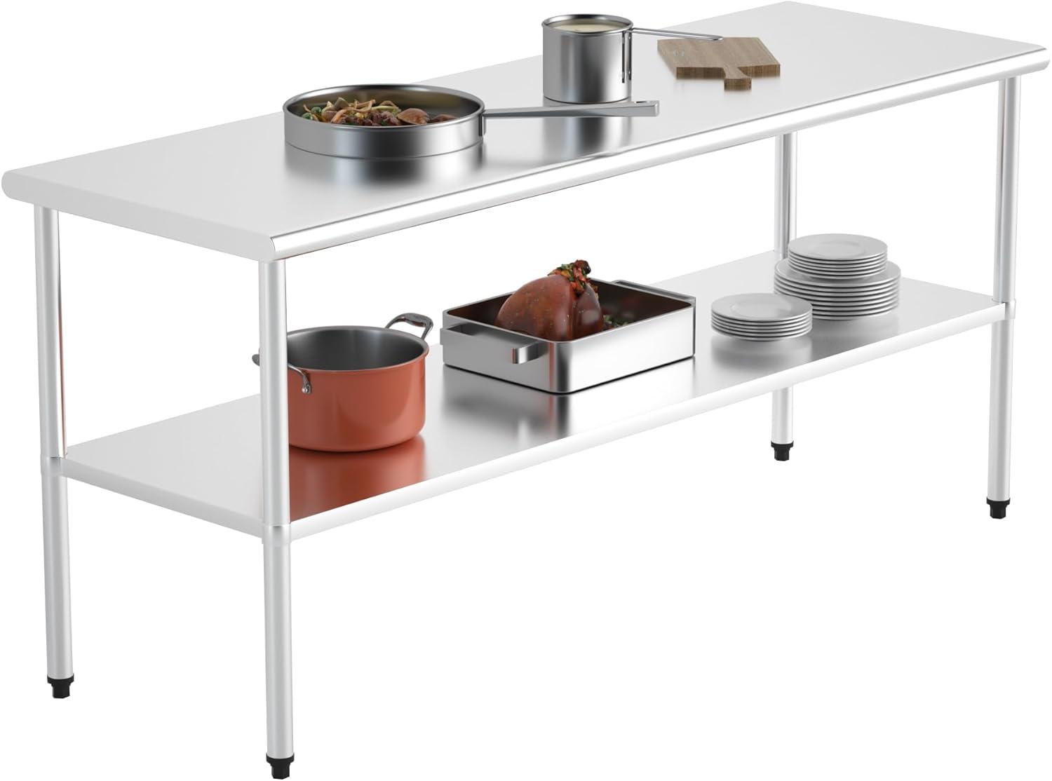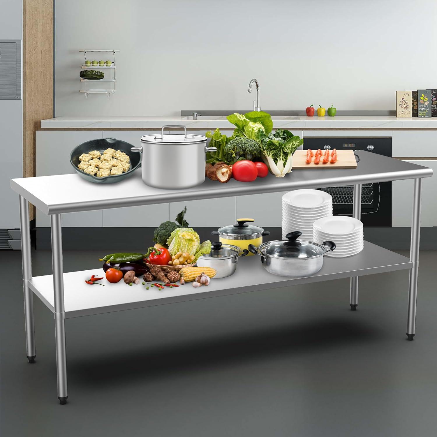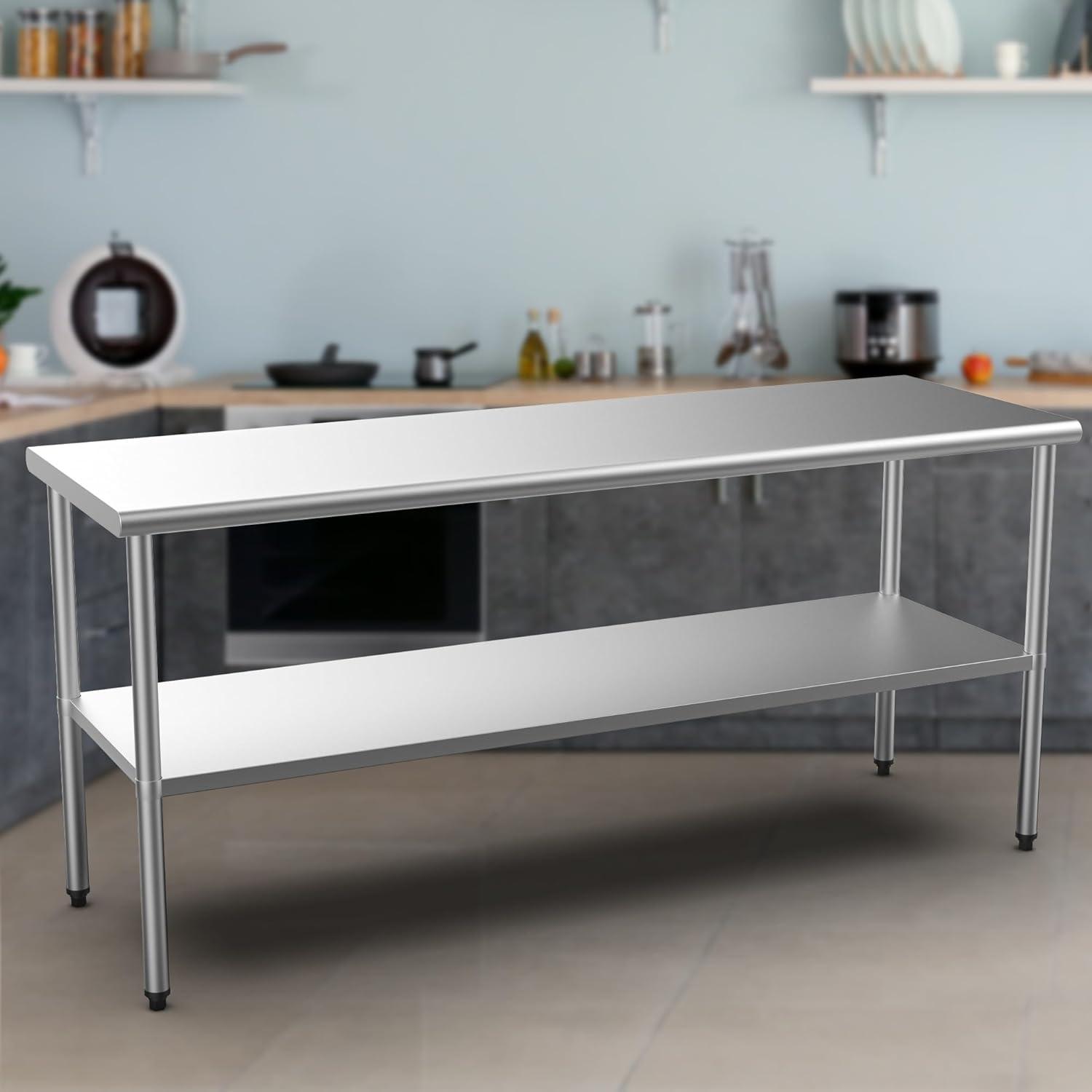 【Stainless Steel Material】Our prep table top, leg and undershelf is made of high quality stainless steel healthy. The stainless steel and polished surface offer greater rust and corrosion resistance. Using rag or paper you can easily clean it quickly.
