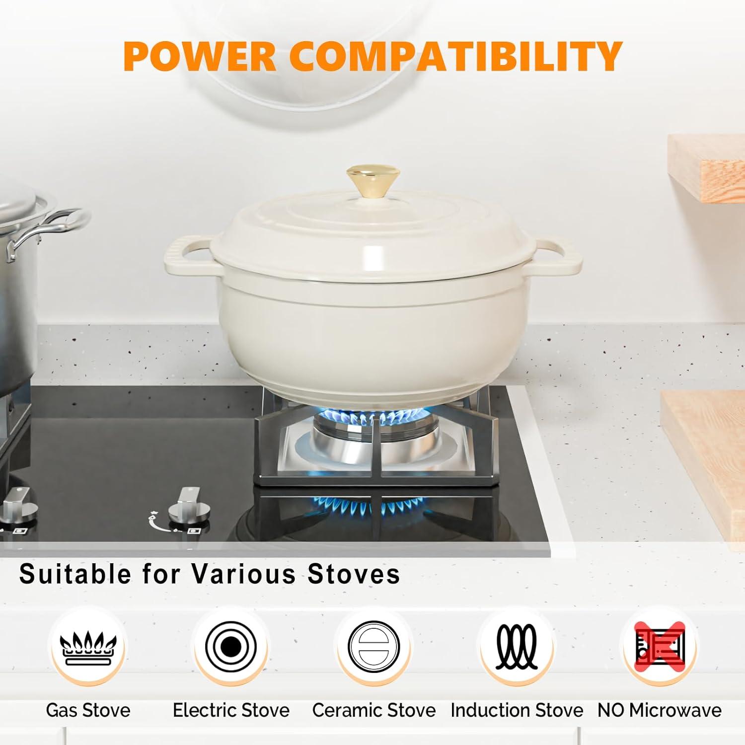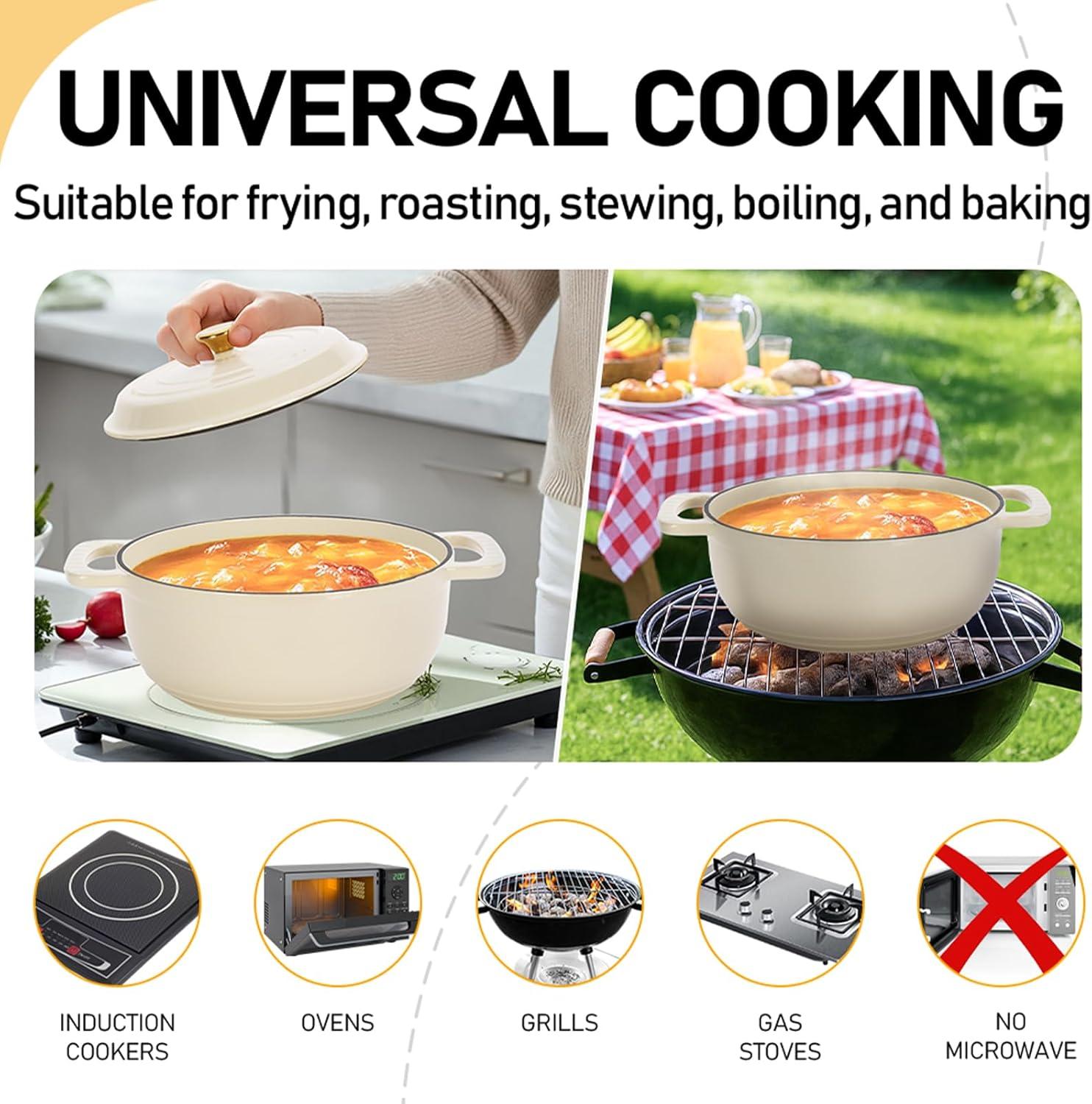 Universal Compatibility: Our Dutch oven is engineered for versatility, designed to perform flawlessly across a wide range of stovetops, including gas, electric, ceramic, and induction. Plus, its oven-safe capability up to 500℉ expands your cooking options exponentially, making it a truly adaptable addition to any kitchen.