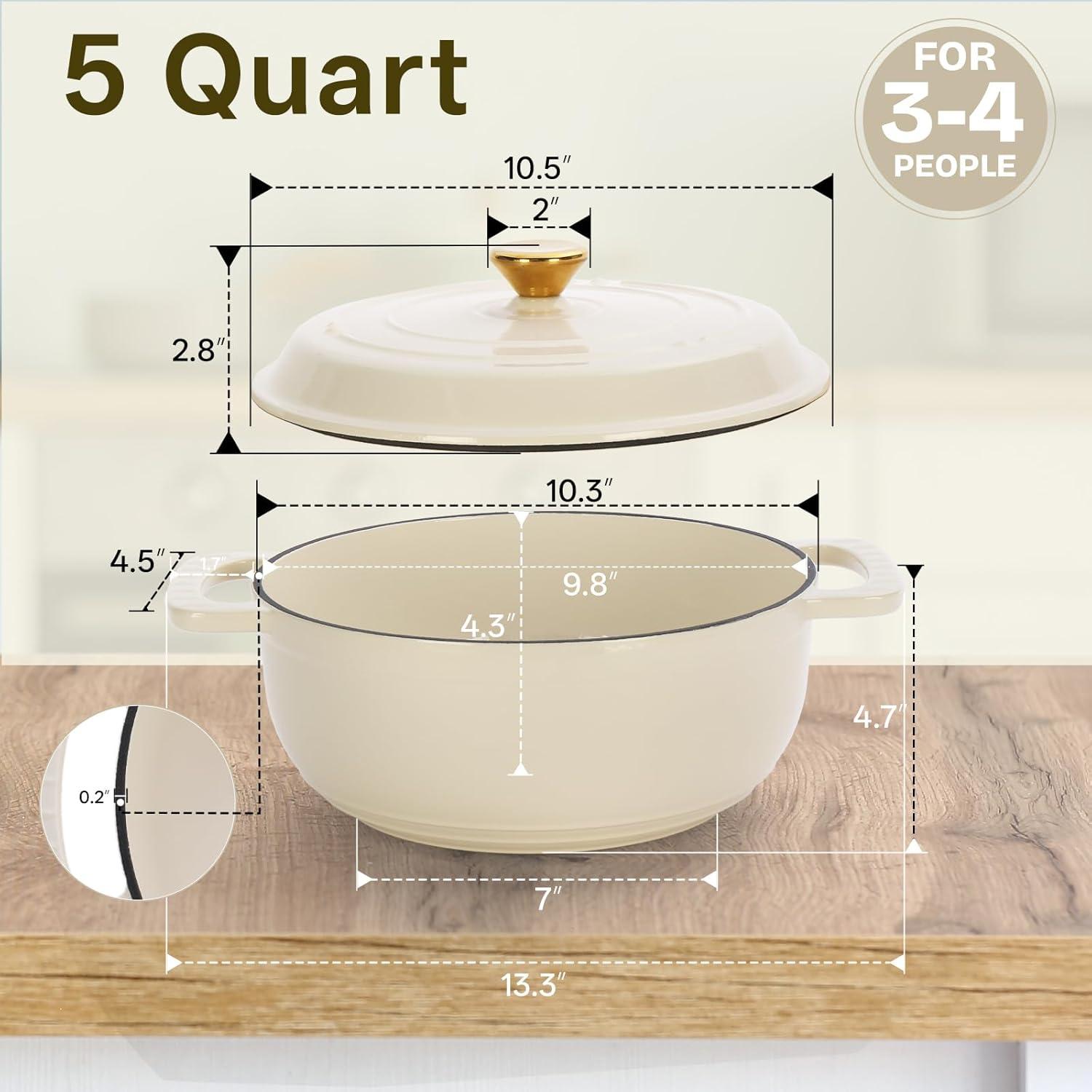 ROVSUN 5 Quart Enameled Cast Iron Dutch Oven with Lid, Dual Handles, Oven Safe up to 500°F or on Stovetop, Compatible for Braising, Stews, Roasting, Bread Baking-Blue(Cream White)