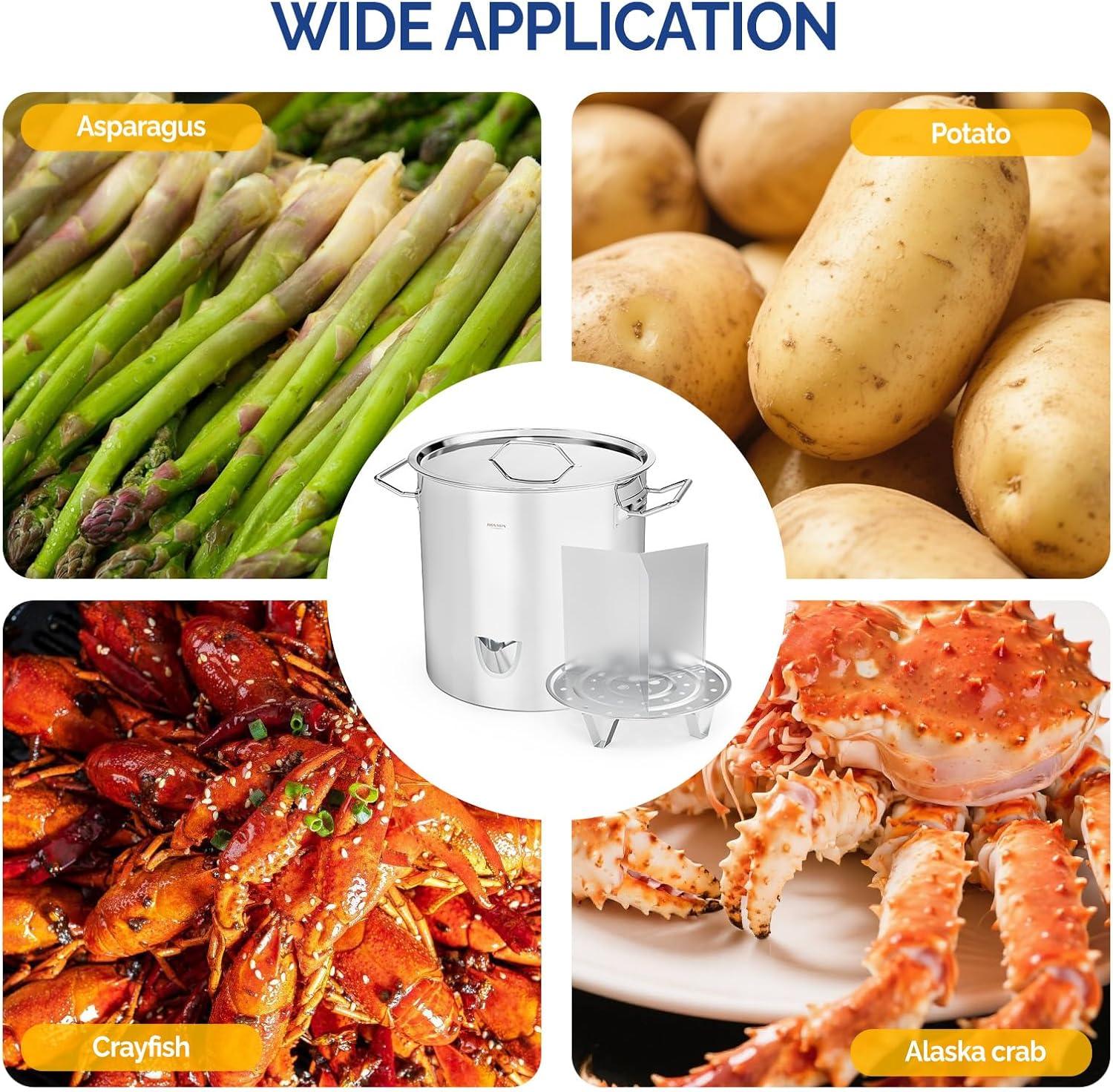 Incredibly Versatile: This steaming pot with lid is perfect for steaming vegetables, cooking tamales, seafood boil, crab boil, and other foods without worrying about losing nutrition or taste.
