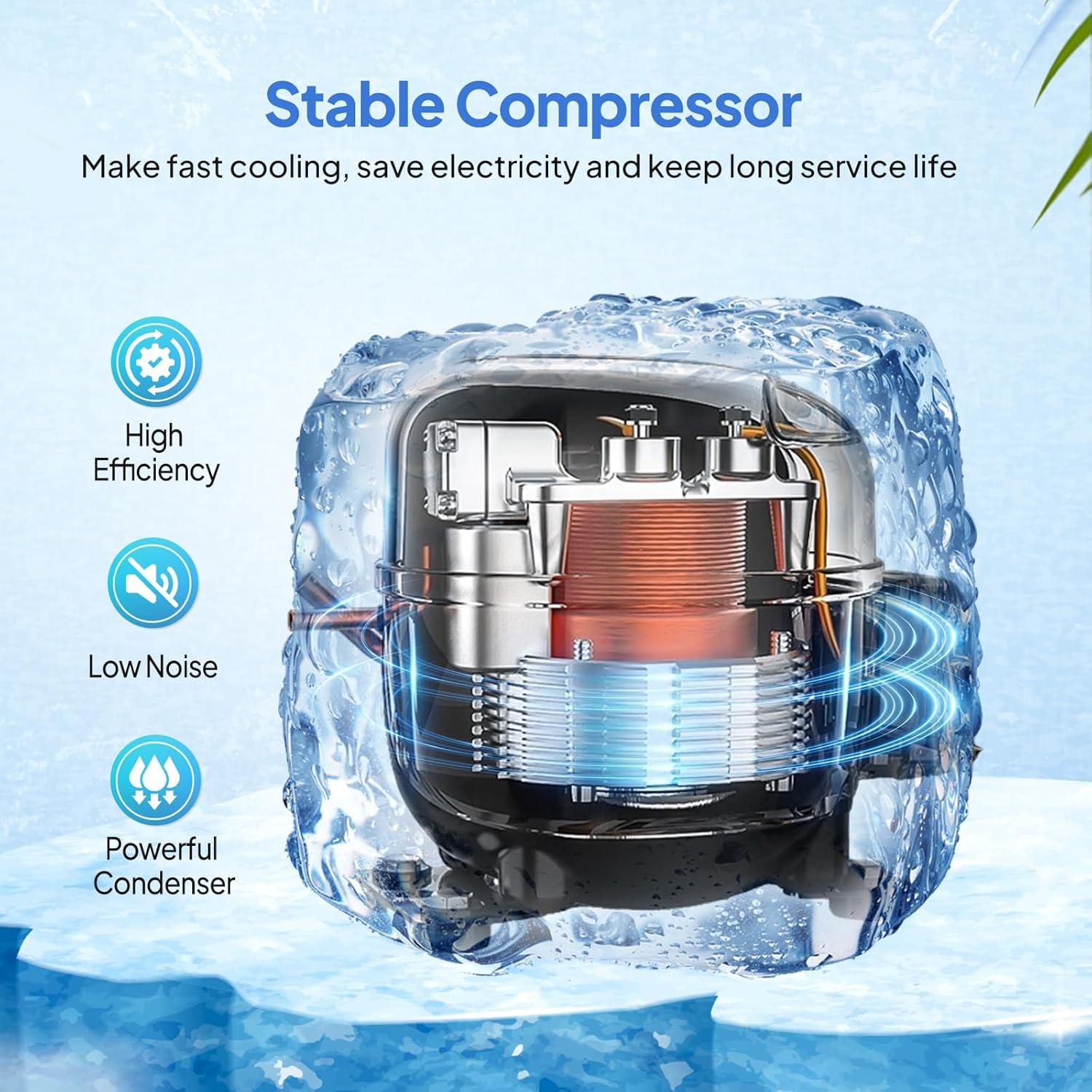 【Powerful Cooling System】Equipped with a powerful compressor, the beverage cooler features fast cooling, energy conservation and low noise. It maintains a consistently cold temperature to keep your beverages at their optimal drinking temperature. Whether you're storing soda, water, or wine, you can trust this refrigerator to keep them perfectly chilled