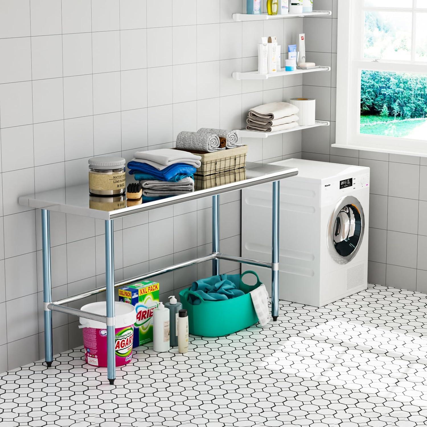 imageROVSUN 60quot x 24quot Stainless Steel Open Base Table NSF Commercial Metal Table Heavy Duty Prep ampamp Work Table with Galvanized Legs for Home Kitchen RestaurantHotel Garage Laundry Utility60 x 24