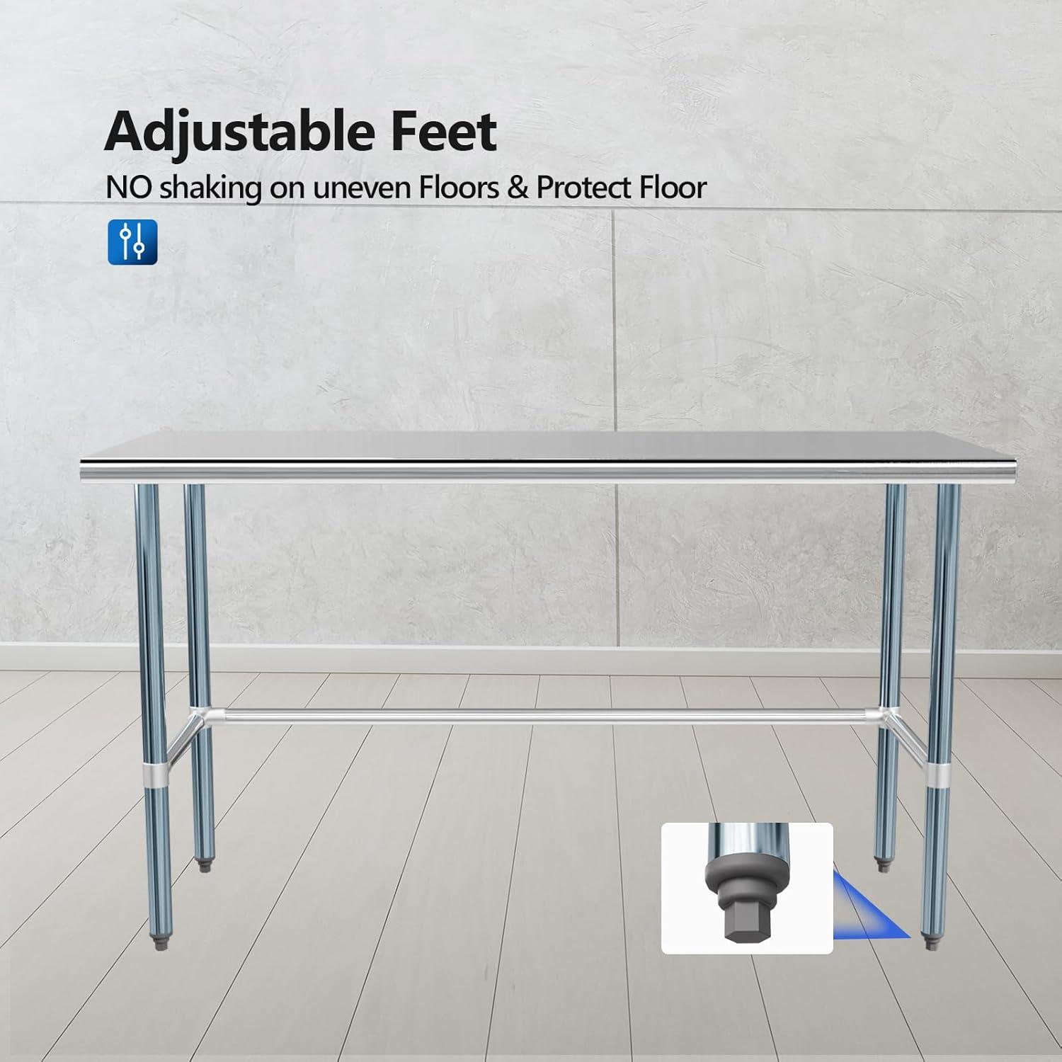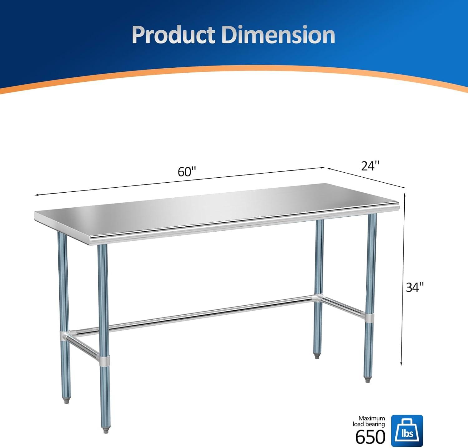 ROVSUN 60" x 24" Stainless Steel Open Base Table, NSF Commercial Metal Table, Heavy Duty Prep & Work Table with Galvanized Legs for Home Kitchen, Restaurant,Hotel, Garage, Laundry, Utility(60' x 24'')