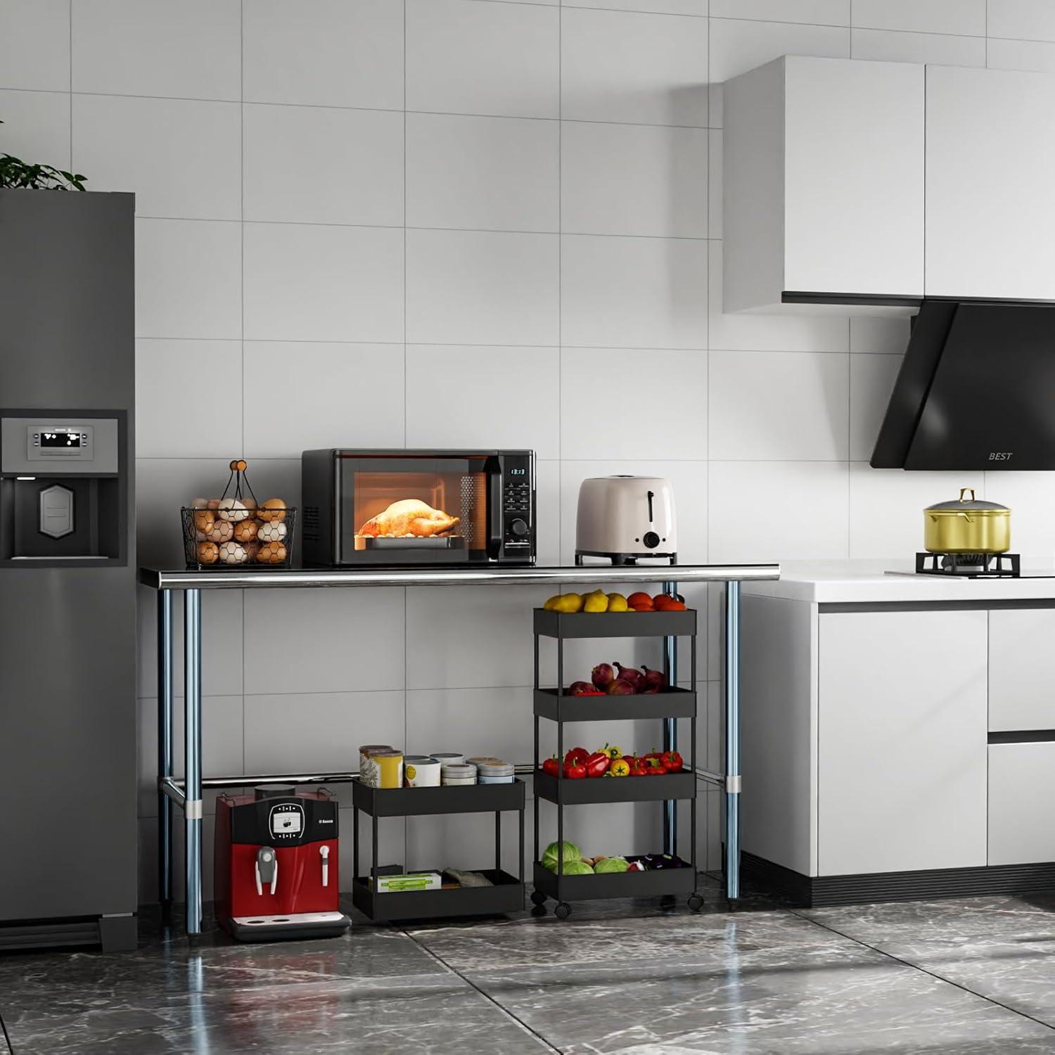 ➤【Large Storage Space】The 60″ X 24″ open base stainless steel table has super load capacity . You can place the kitchen utensils or any other tools in the top shelf, And the design of the open base allows you to put storage boxes, stools, clothes baskets and other equipment and supplies.
