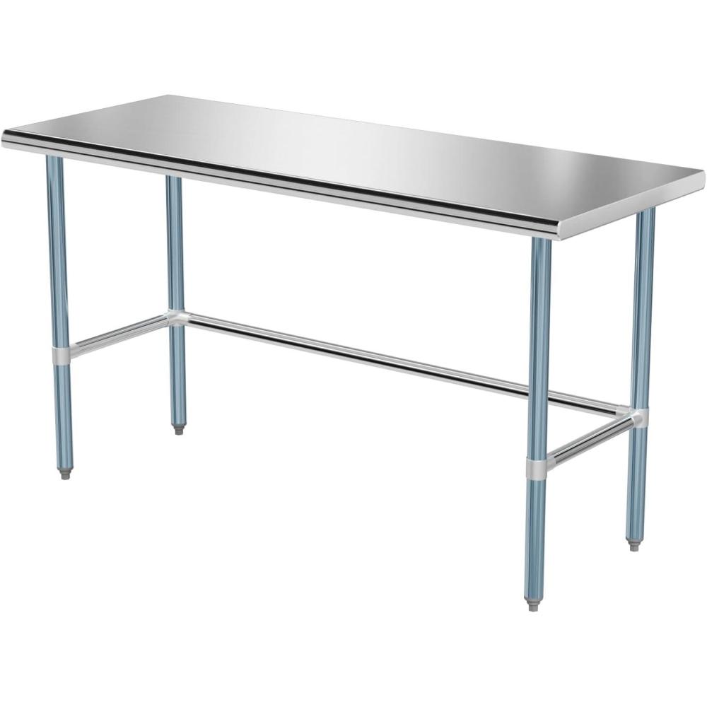 ROVSUN 60″ x 24″ Stainless Steel Open Base Table, NSF Commercial Metal Table, Heavy Duty Prep & Work Table with Galvanized Legs for Home Kitchen, Restaurant,Hotel, Garage, Laundry, Utility(60” x 30”)