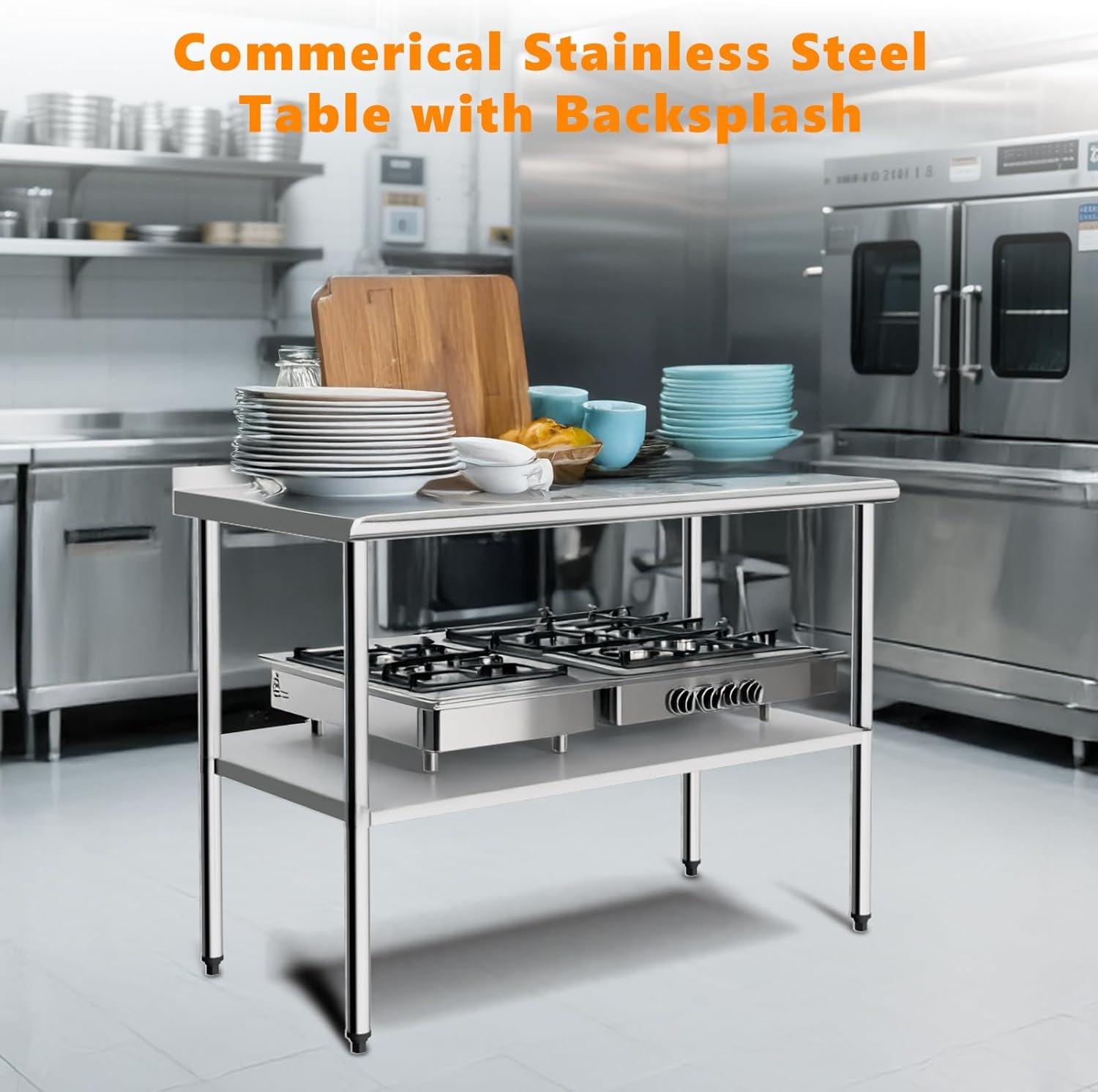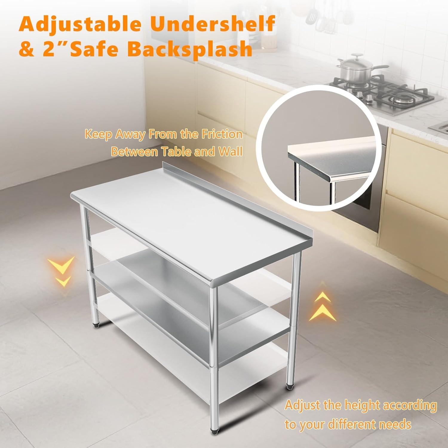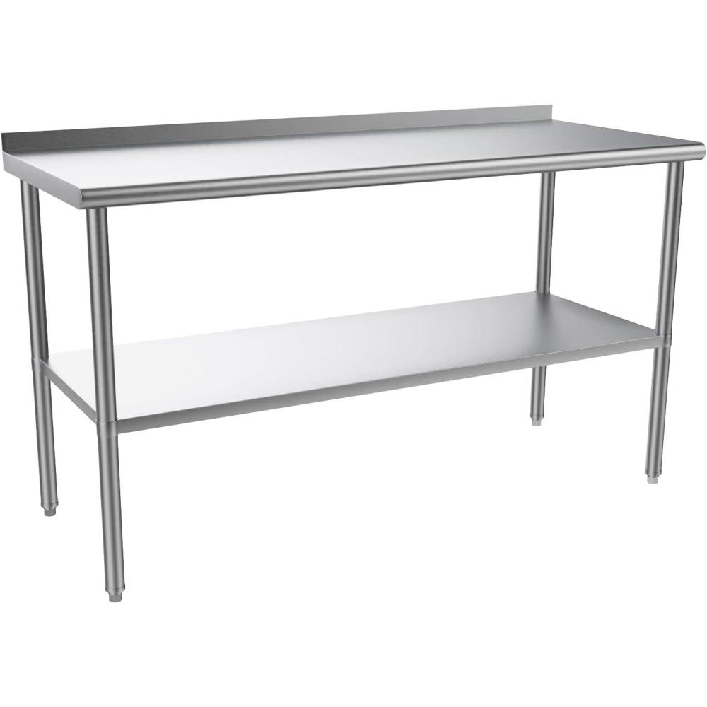imageROVSUN 72 x 24 Stainless Steel Table for Prep ampamp WorkCommercial Worktables ampamp WorkstationsHeavy Dut Metal Table with Adjustable UnderShelf ampamp Backsplash for Kitchen RestaurantHomeHotel60x 24