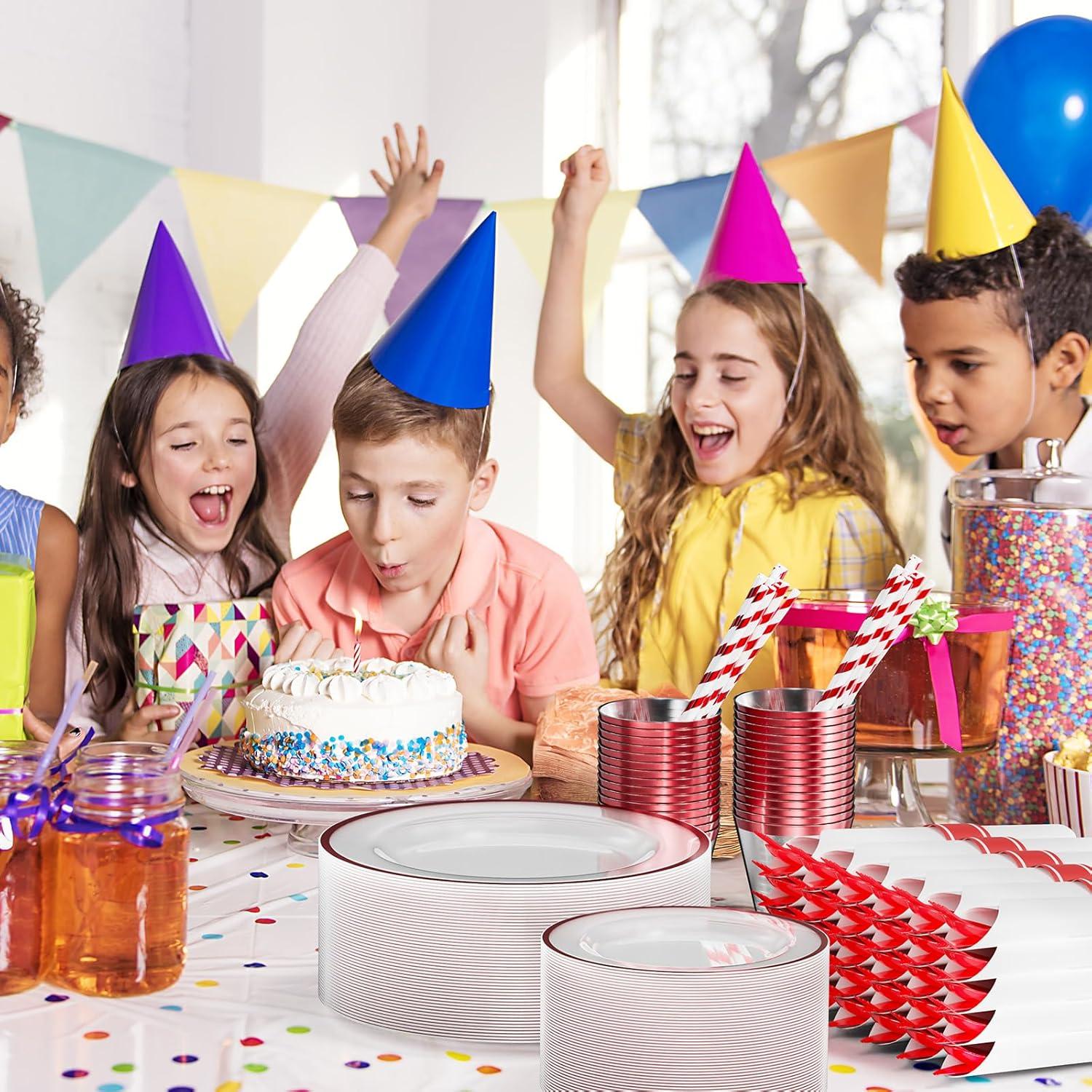 ➤【Prefect for Parties】 Do not worry about the mess after the parties with the disposable plate sets. The disposable party sets is suitable for various occasions,wedding, birthday party, anniversary, engagement, bridal shower, graduation, christmas,Thanksgiving,Mother's Day,or any other special event.